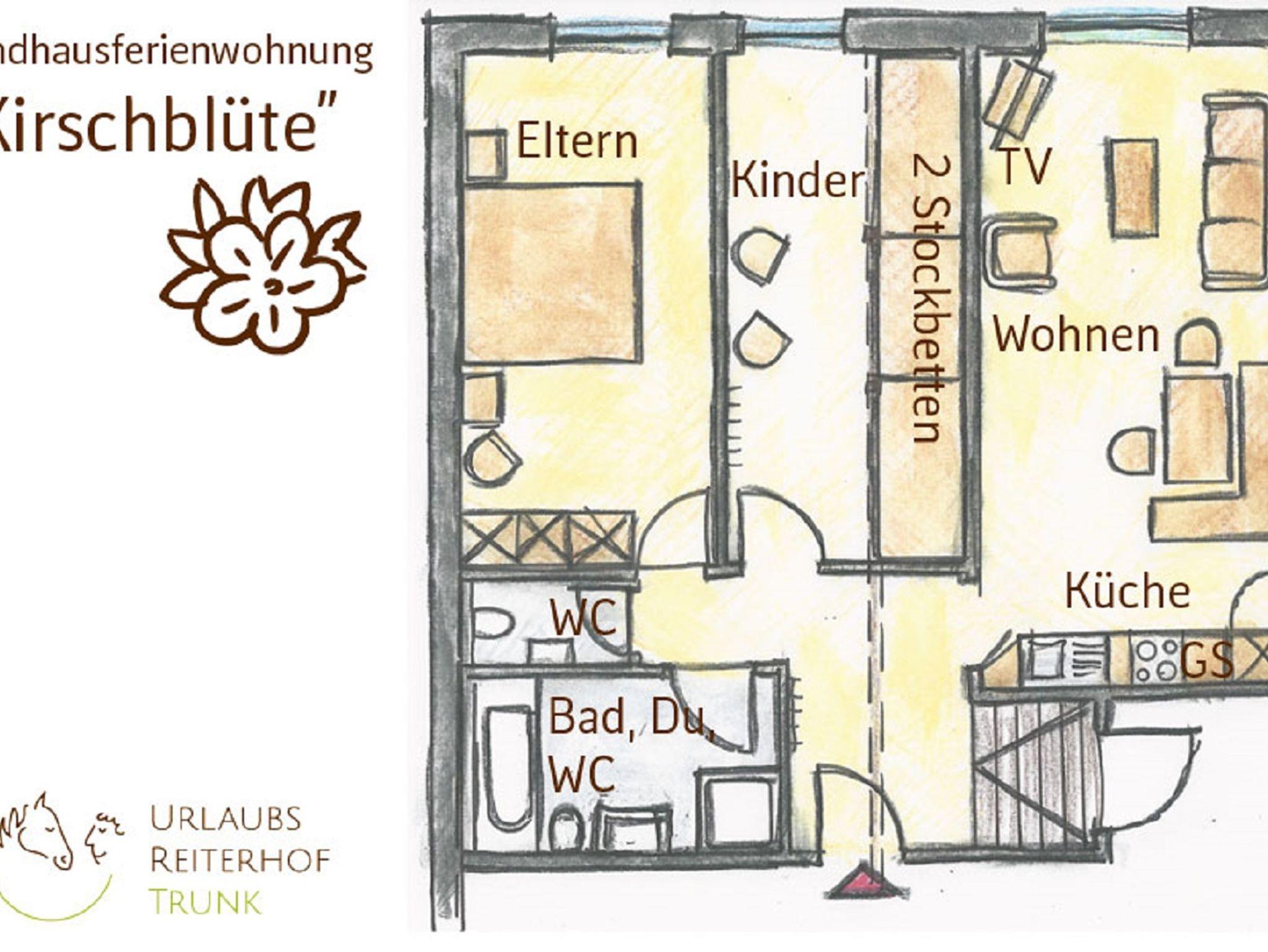 Urlaubsreiterhof Trunk, Ferienwohnung Kirschblüte für 1-6 Personen mit Echtholzmöbeln