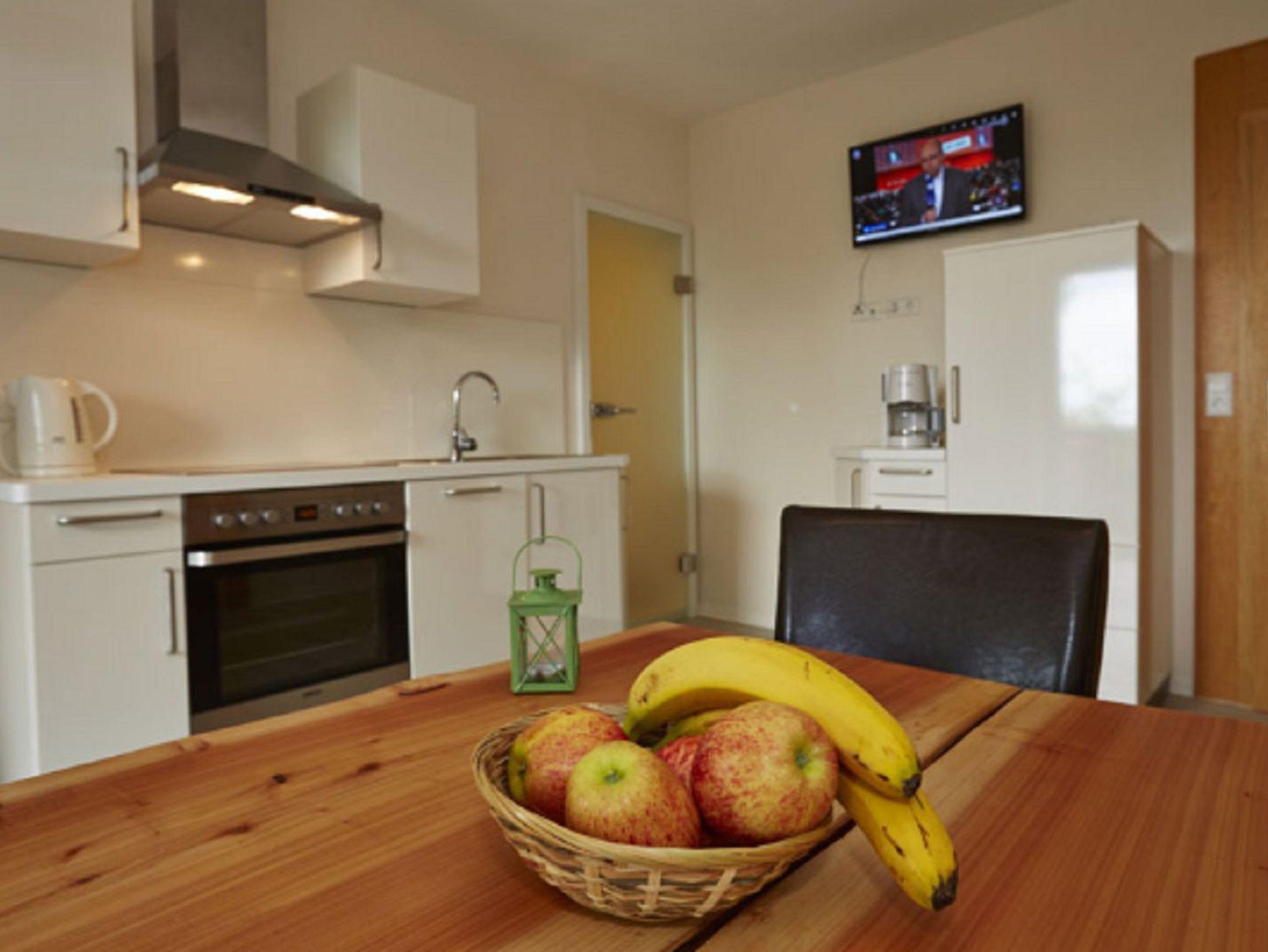 Unsere Ferienwohnung bietet Platz für 1-4 Personen. Die komplett ausgestattete Wohnküche mit Essbereich lässt keine Wünsche offen. Das Ferienhaus verfügt über 2 Schlafzimmer mit einem Doppelbett und zwei Einzelbetten. Das geräumige Badezimmer mit ebenerdiger Dusche und großem Spiegel rundet das Gesamtbild ab. Zum Reinigen Ihrer Kleidung stehen eine Waschmaschine und ein Trockner im Haus zur Verfügung. Die Wohnung bietet einen Balkon zum verweilen in der Sonne. Das WLAN und den Parkplatz vor dem Haus können Sie kostenfrei nutzen.