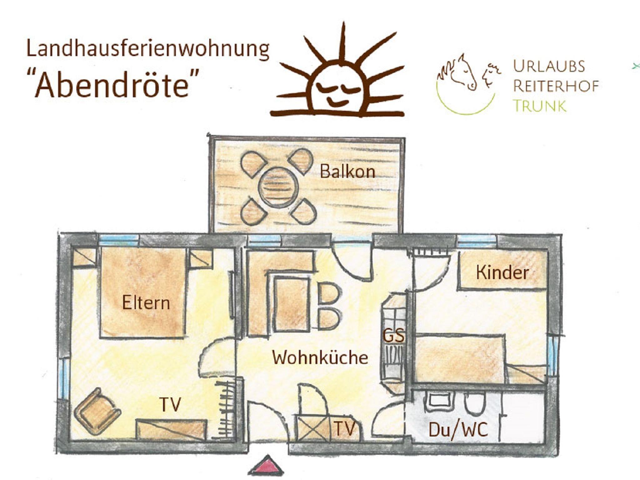 Urlaubsreiterhof Trunk, Ferienwohnung Abendröte für 1-4 Personen mit Balkon