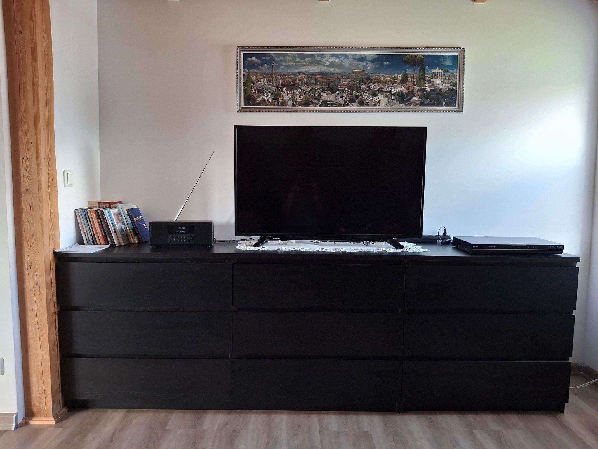 Im Schlafzimmer befindet sich ein Doppelbett (2 Matratzen zu je 90x200 cm, auch teilbar in 2 Einzelbetten) und bei Bedarf ein Babybett, ebenso Schränke, Schubladen und ein Flachbildfernseher. Bettwäsche ist incl.