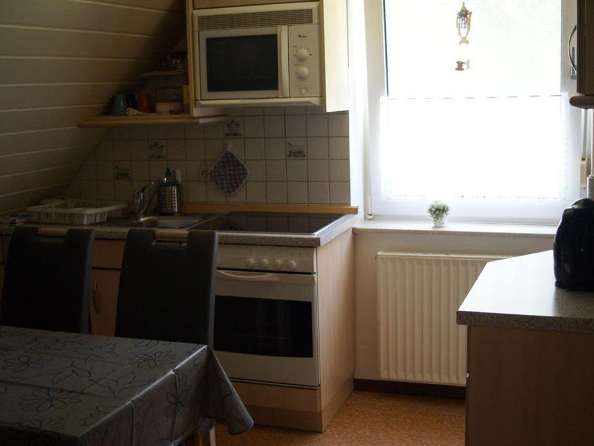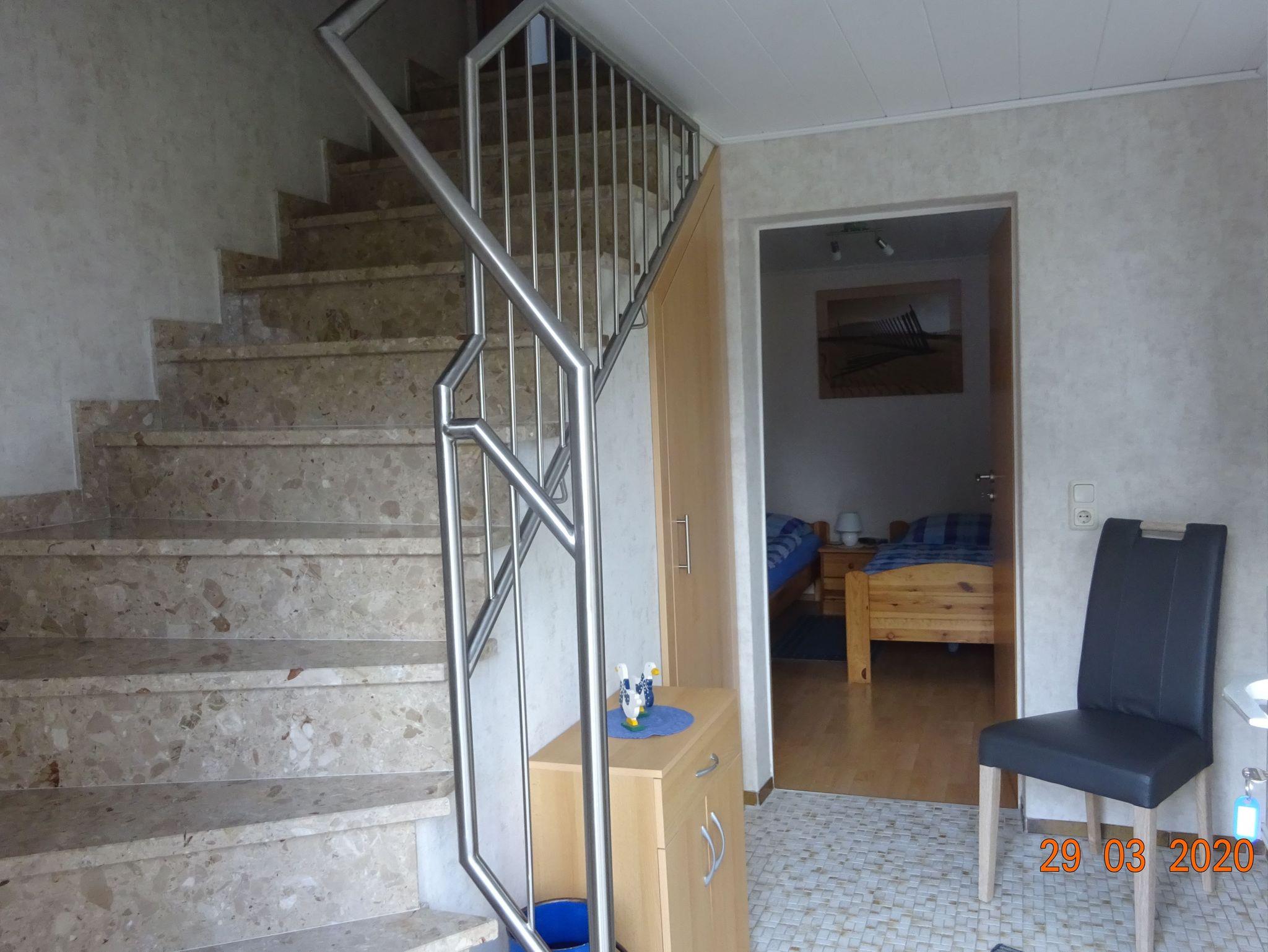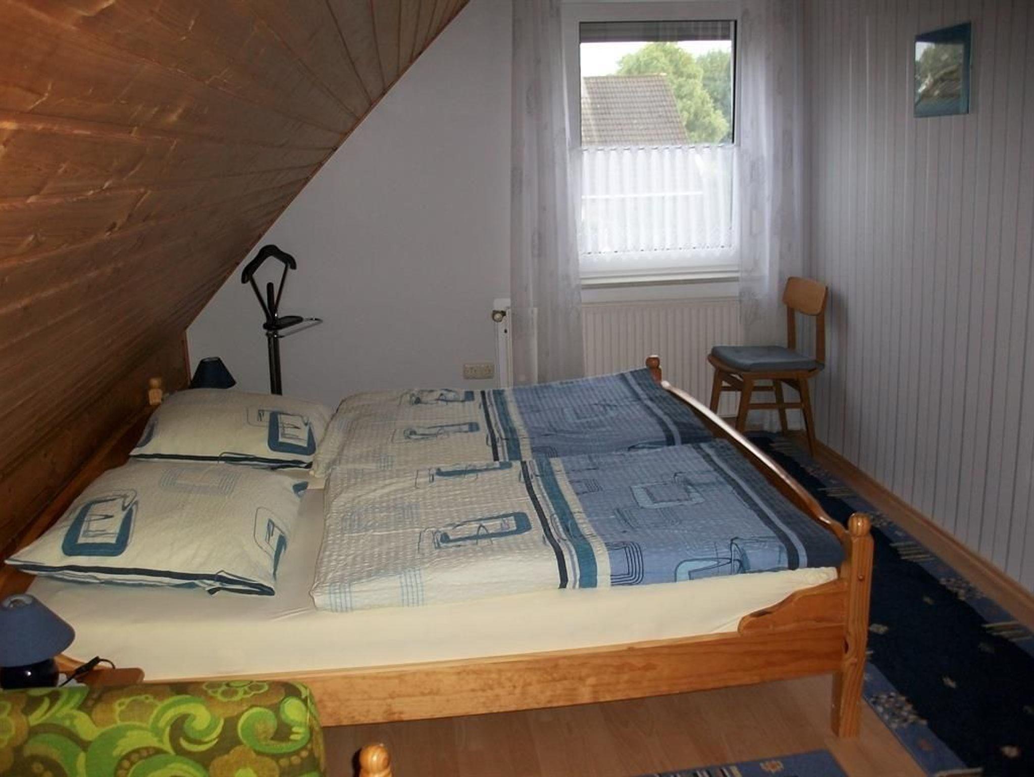 Die Ferienwohnung (60qm) befindet sich in ruhiger Lage am Kanal gelegen. Die Ferienwohnung verfügt über ein Wohnzimmer (OG) mit neuer Couchgarnitur, Flachbild-TV und eine Anbauwand mit Büchern. Eine separate Küche mit Einbauküche, Mikrowelle und Sitzecke, Kinderhochstuhl zustellbar (OG). Das Schlafzimmer im Obergeschoss verfügt über ein Doppelbett und ein Einzelbett. Ein Kinderbett kann noch dazugestellt werden. Das Schlafzimmer im Erdgeschoss hat zwei Einzelbetten. Das Bad mit Dusche und WC befindet sich im Obergeschoss. Bettwäsche und Handtücher werden gestellt. Für die Kleinen steht eine Spielkiste mit Spielsachen und Gesellschaftsspielen bereit. Die neue überdachte Terrasse mit gemütlichen Gartenmöbeln und Grill liegt direkt an der Ferienwohnung. Ein Parkplatz und eine Fahrradgarage sind vorhanden. Waschmaschine u.Trockner kann bei der Vermieterin nach Absprache gegen eine Gebührvon 2 Euro pro Gang genutzt werden. Fahrräder, Tischtennisplatte und unser Ruderboot stehen unseren Gäste kostenlos zur Verfügung.