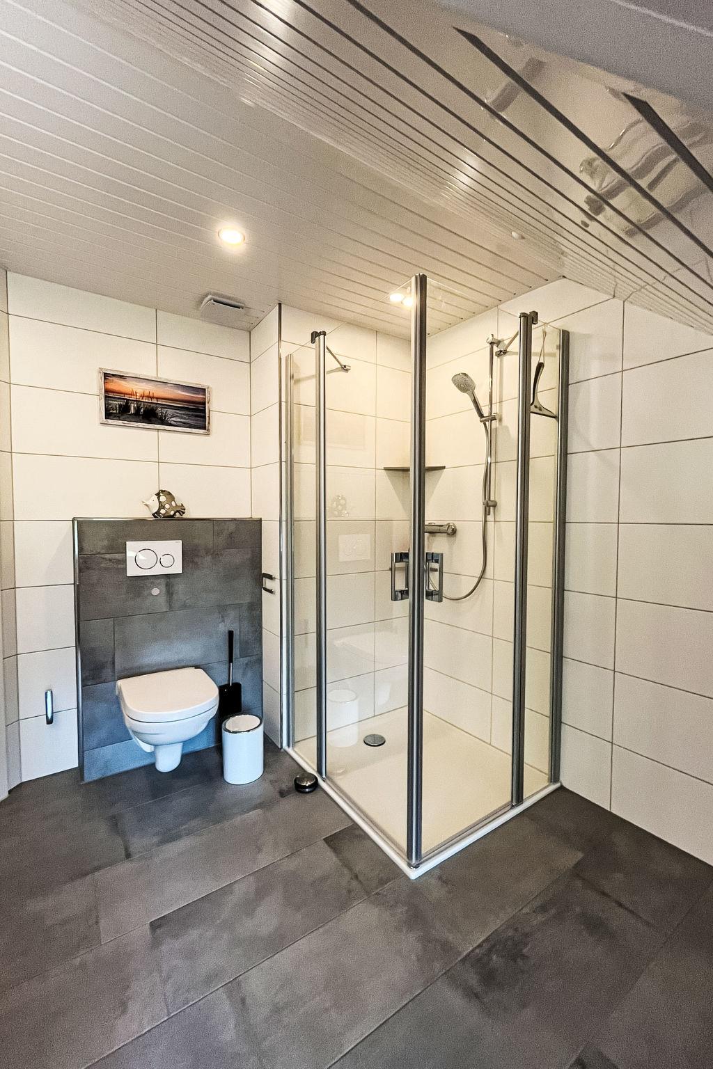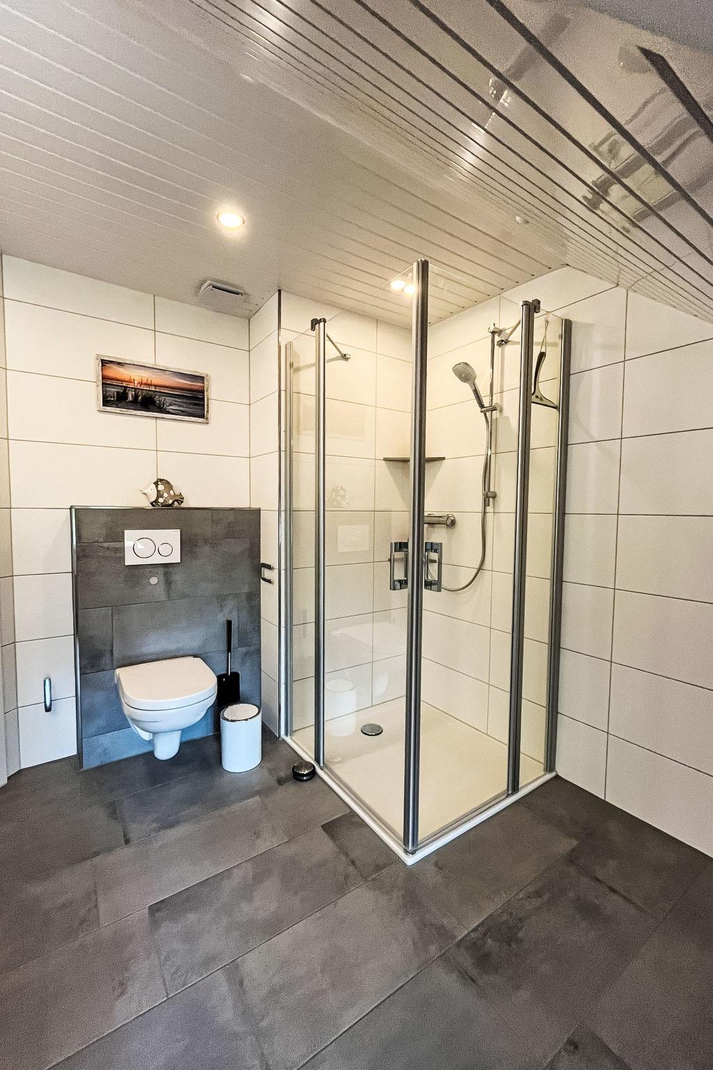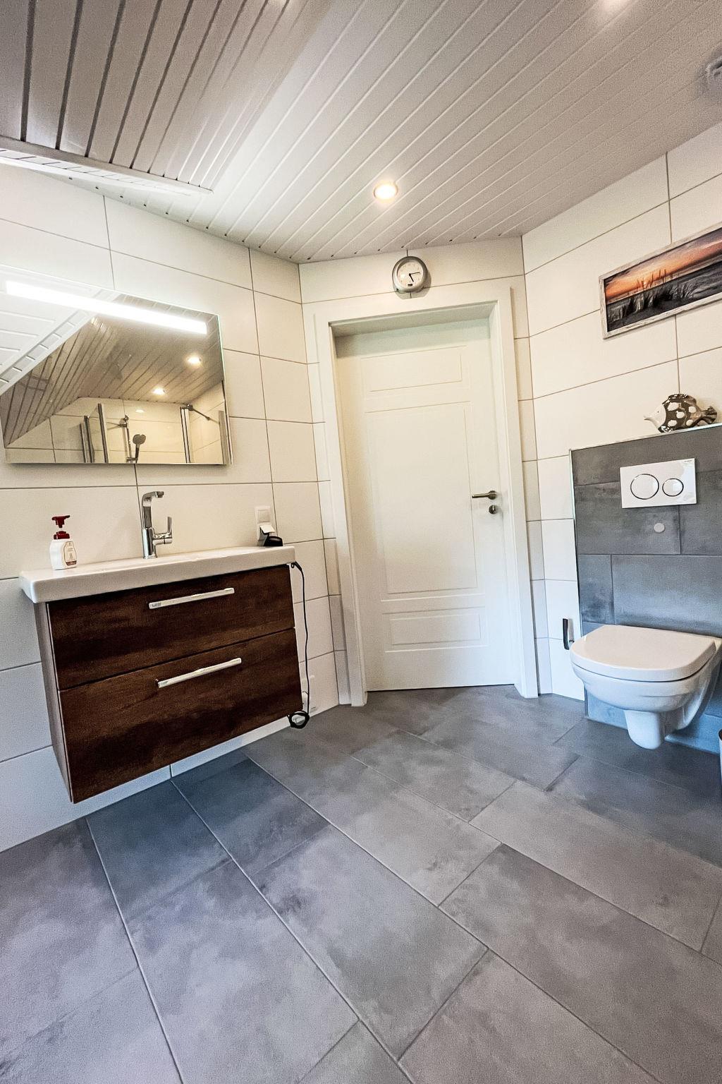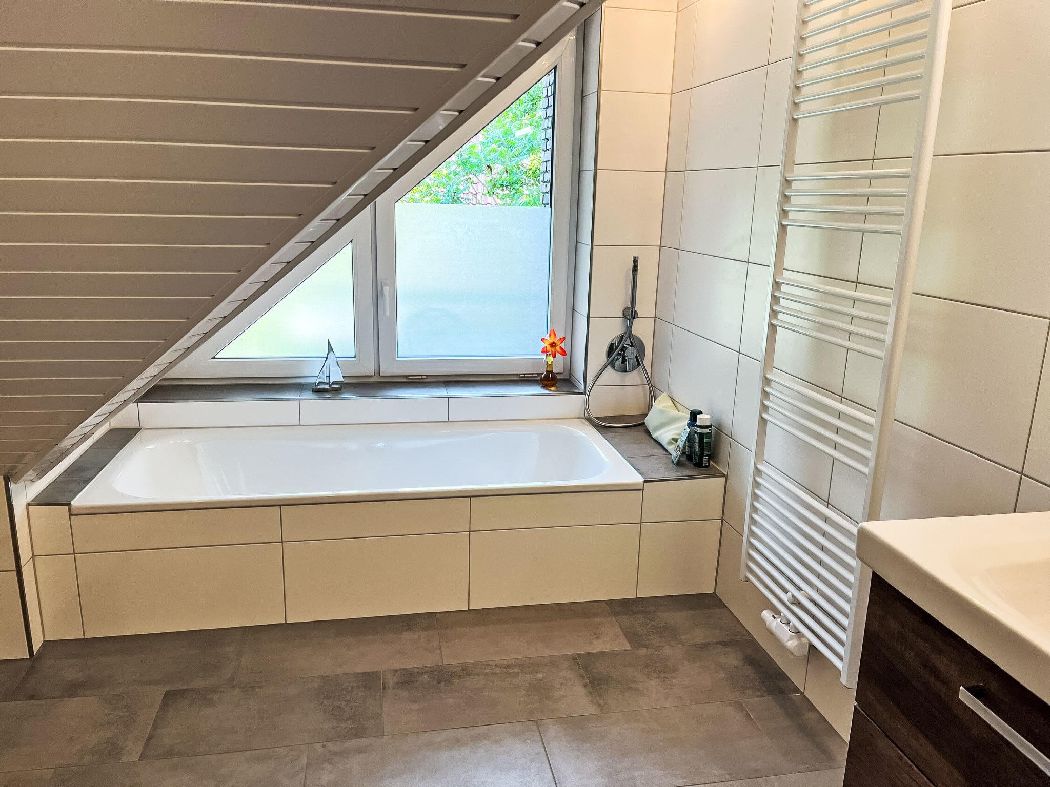 "Ferienhuus up Hütten", 2-room apartment 110 m2, on the top floor. Partly with sloping ceilings, renovated in 2025, tasteful and cosy furnishings: living room with satellite TV (flat screen). 1 room with 1 double bed (2 x 90 cm, length 200 cm), satellite TV (flat screen). Open kitchen (oven, dishwasher, 4 ceramic glass hob hotplates, toaster, kettle, microwave, electric coffee machine) with dining table. Exit to the balcony. Bath/shower/WC. Small balcony, terrace. Terrace furniture, balcony furniture. Facilities: mosquito net, children's high chair, baby cot (extra), hair dryer. Internet (WiFi, free). Parking at the house. Please note: non-smokers only. Private entrance, smoke alarm.