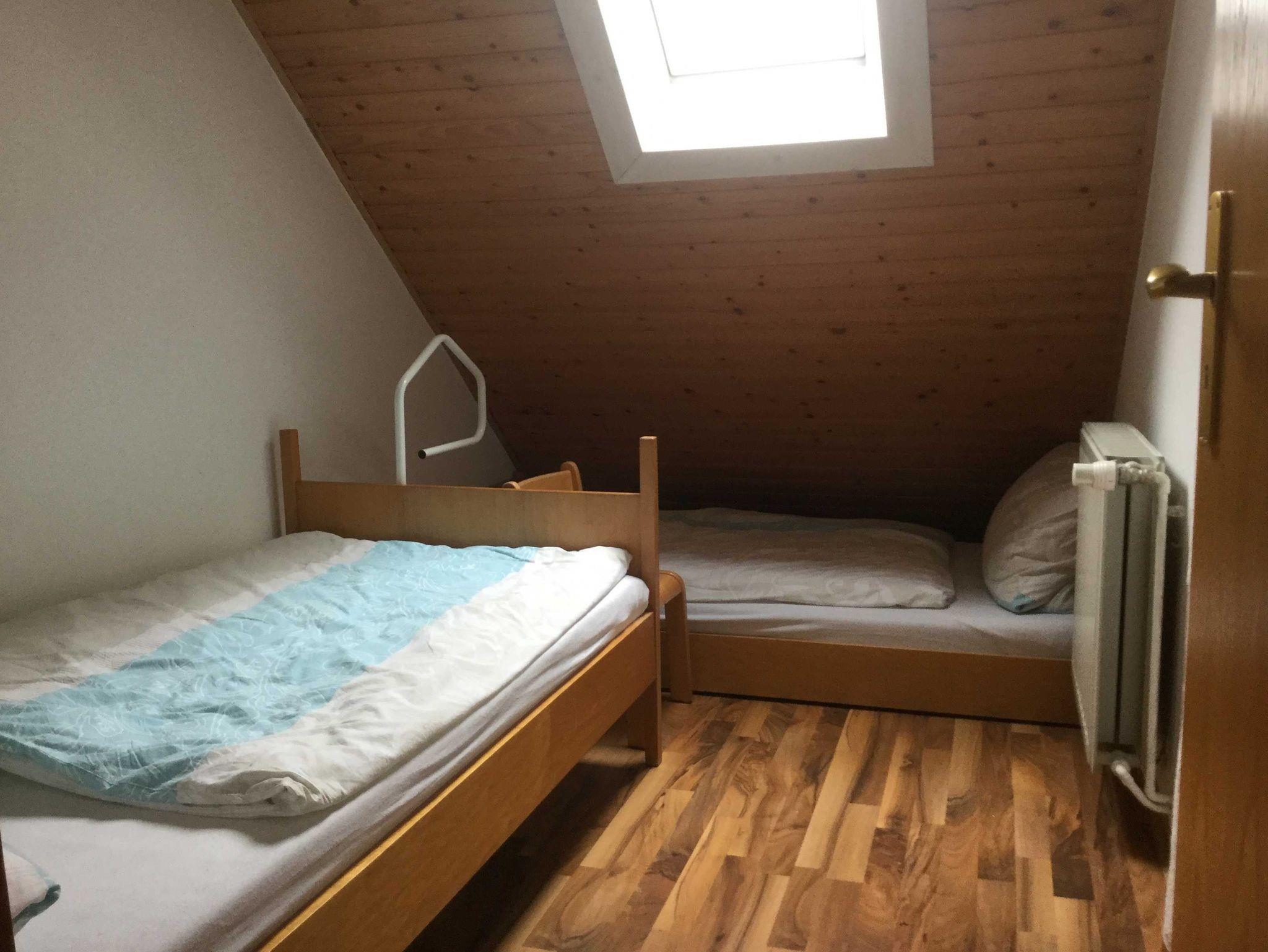 - Eine Treppe führt zu den Schlafräumen.