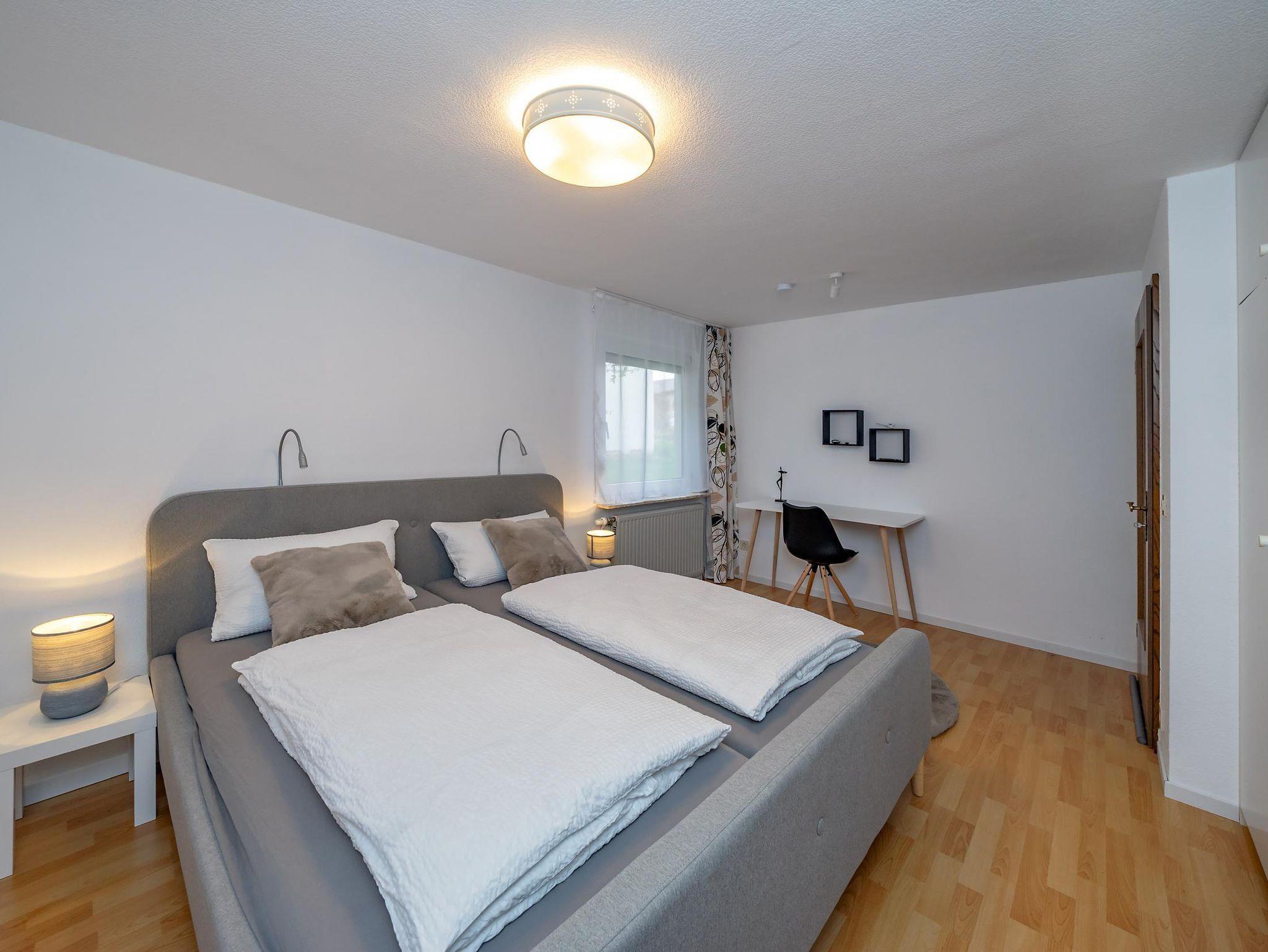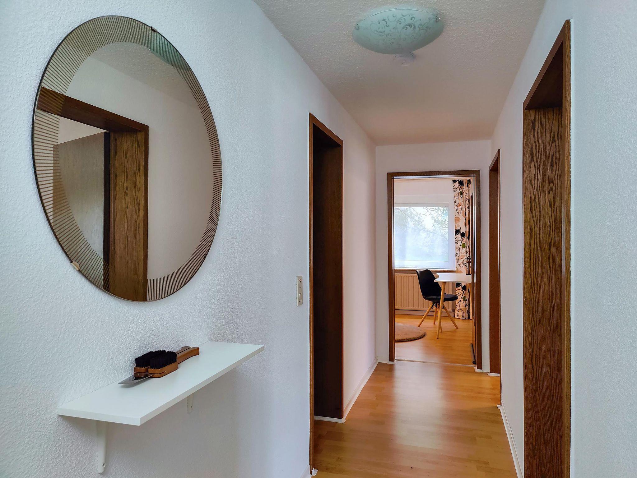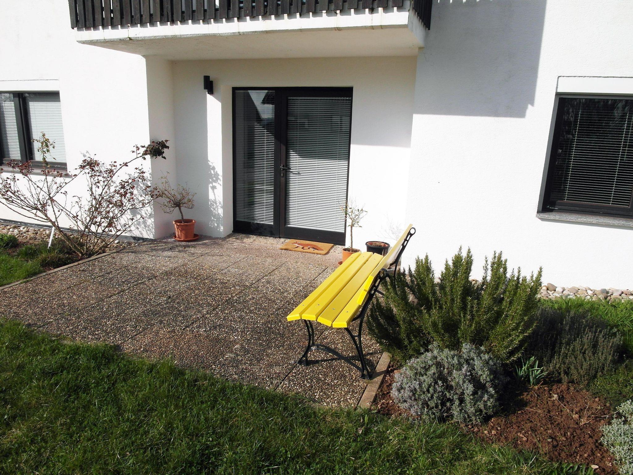 Die helle Erdgeschosswohnung (70qm) befindet sich im Haus der Gastgeber. Für Fahrräder und Motorräder steht eine Garage mit Lademöglichkeit zur Verfügung, Parkplätze gibt es direkt am Haus und an der Straße, kostenloses W-Lan, große Küche mit Zugang zur eigenen Terrasse, geräumiges Wohnzimmer, Schlafzimmer mit Doppelbett, Bad mit Dusche und WC, Flur mit Garderobe