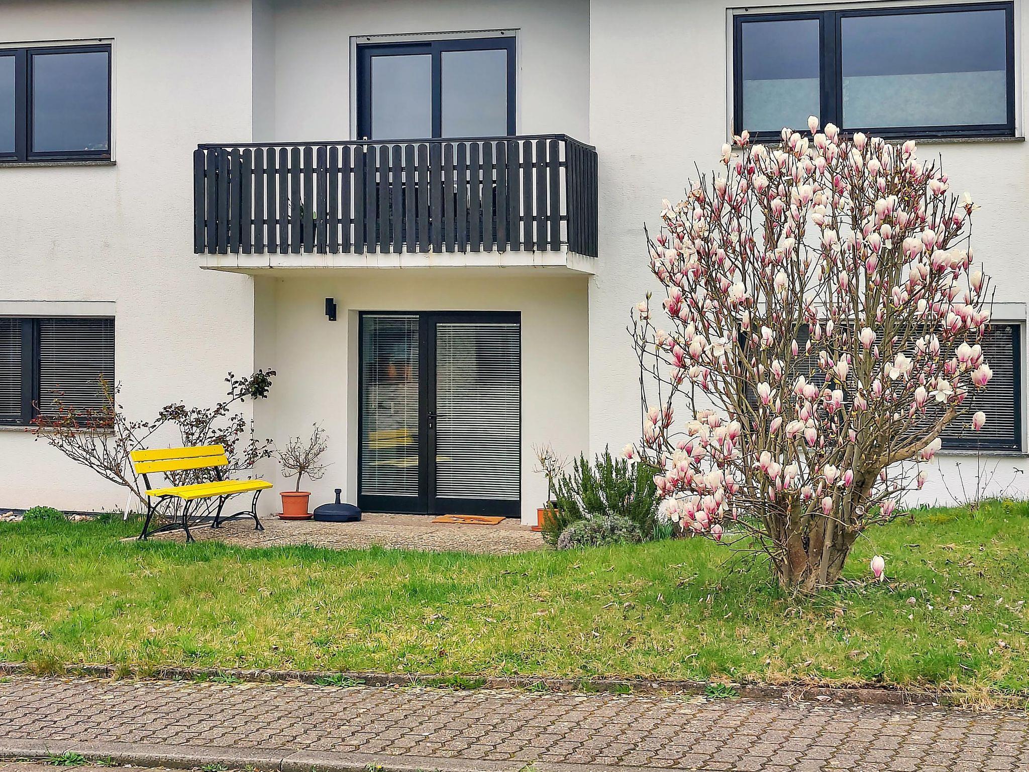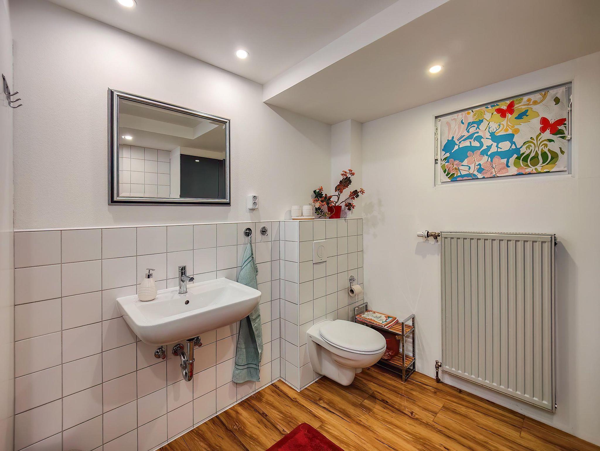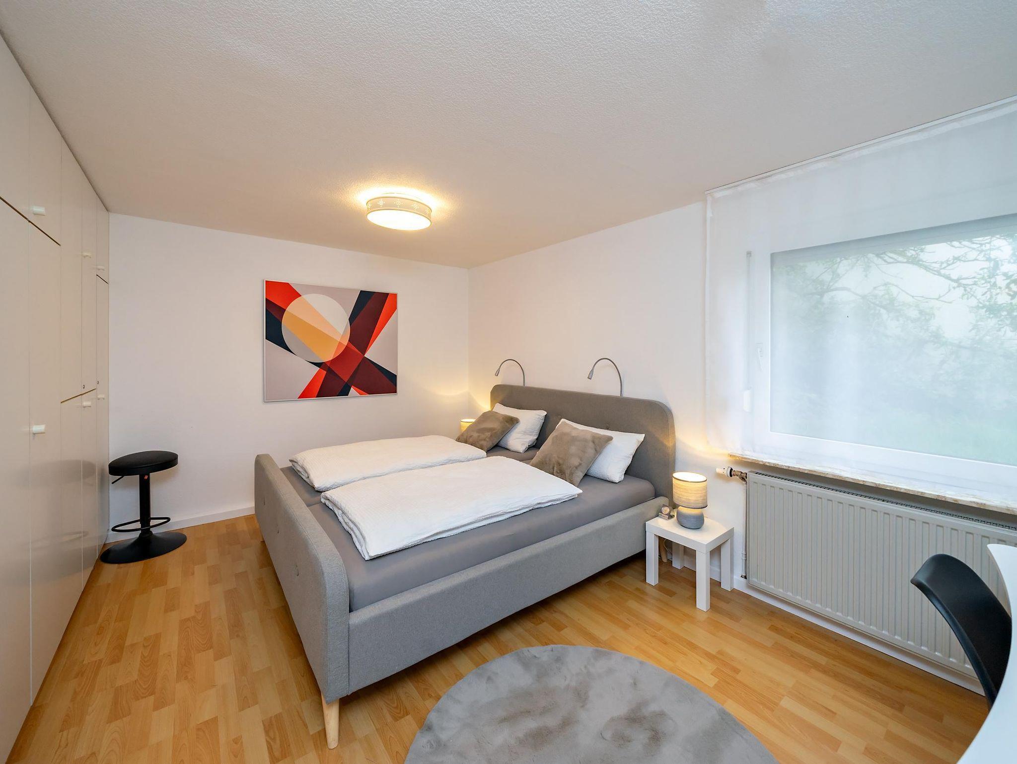 Die helle Erdgeschosswohnung (70qm) befindet sich im Haus der Gastgeber. Für Fahrräder und Motorräder steht eine Garage mit Lademöglichkeit zur Verfügung, Parkplätze gibt es direkt am Haus und an der Straße, kostenloses W-Lan, große Küche mit Zugang zur eigenen Terrasse, geräumiges Wohnzimmer, Schlafzimmer mit Doppelbett, Bad mit Dusche und WC, Flur mit Garderobe