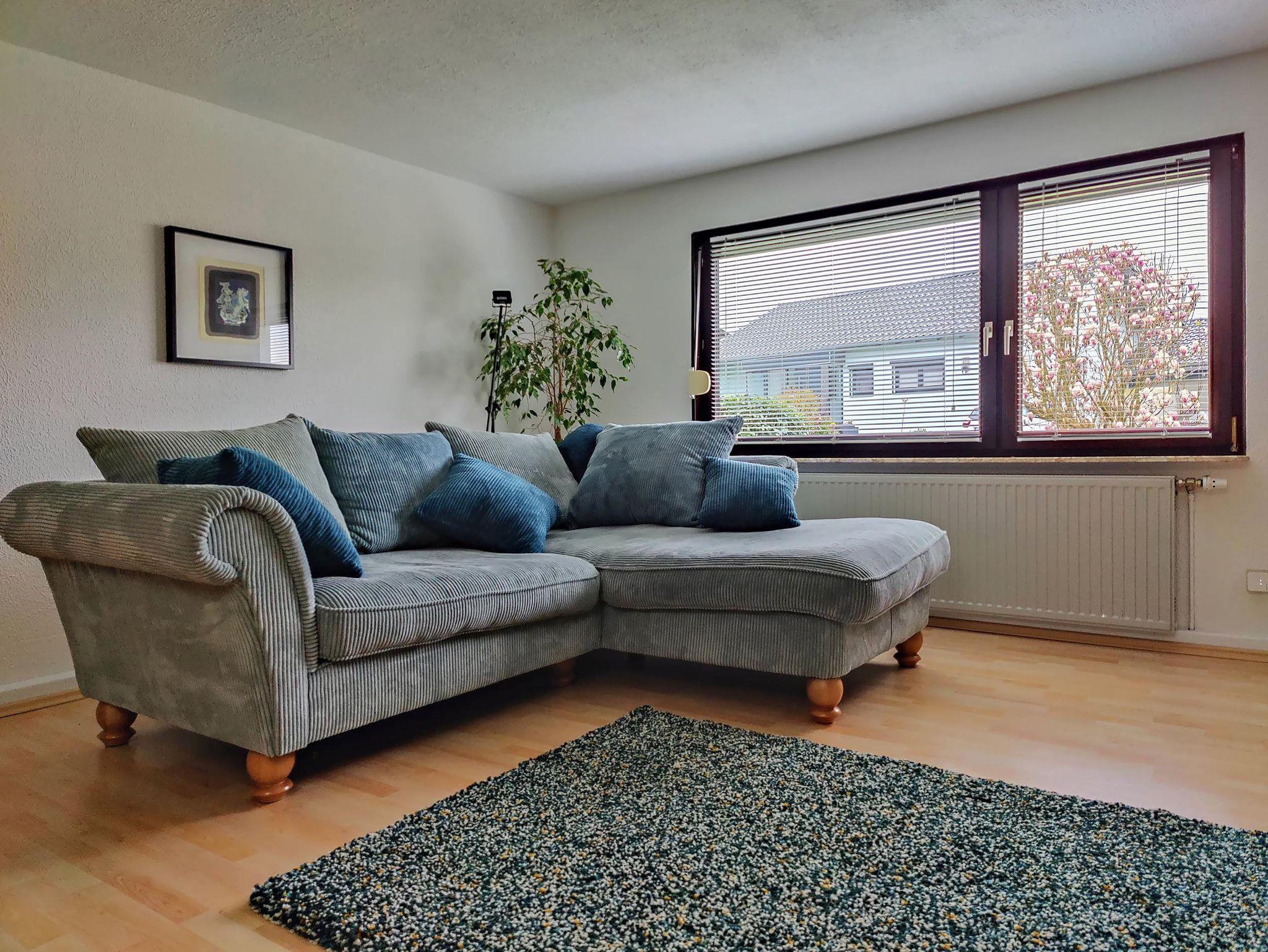 Ausstattung Wohnzimmer: Esstisch, großes Sofa, Flachbild-Fernseher mit Internet-Zugang , DVD -Player, X-Box, Stereoanlage mit Radio, CD und USB-Anschluss, CD’s, DVD’s, Literaturauswahl, Gesellschaftsspiele, Rad-und Wanderführer, Kartenmaterial