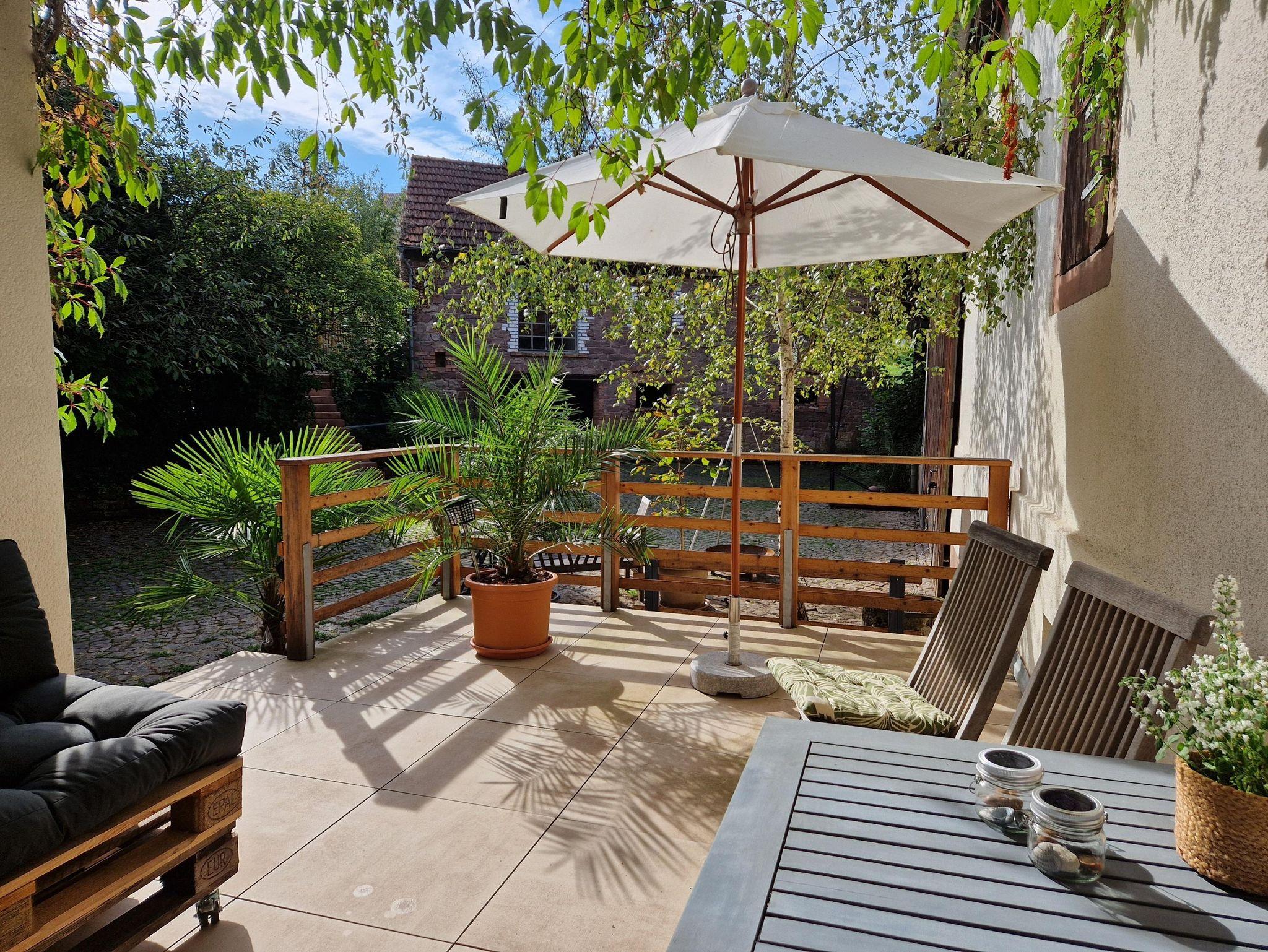 Wir heißen Sie willkommen auf einem ehemaligen Hofanwesen aus dem Jahr 1905, bestehend aus einem restaurierten, modernisierten Sandsteinbauernhaus mit einem großzügigen, gemütlichen Innenhof und sich daran anschließender Hofanlage.