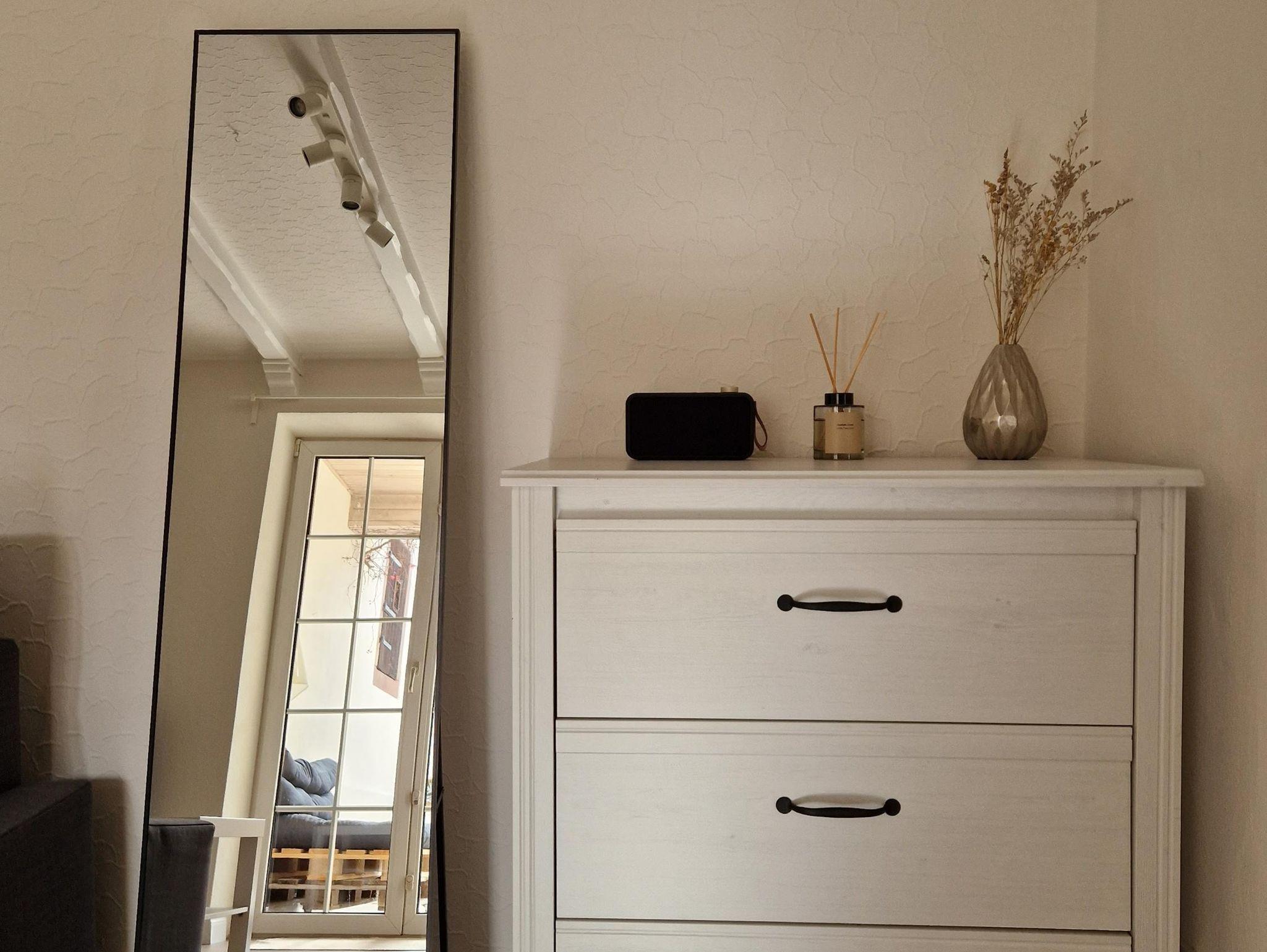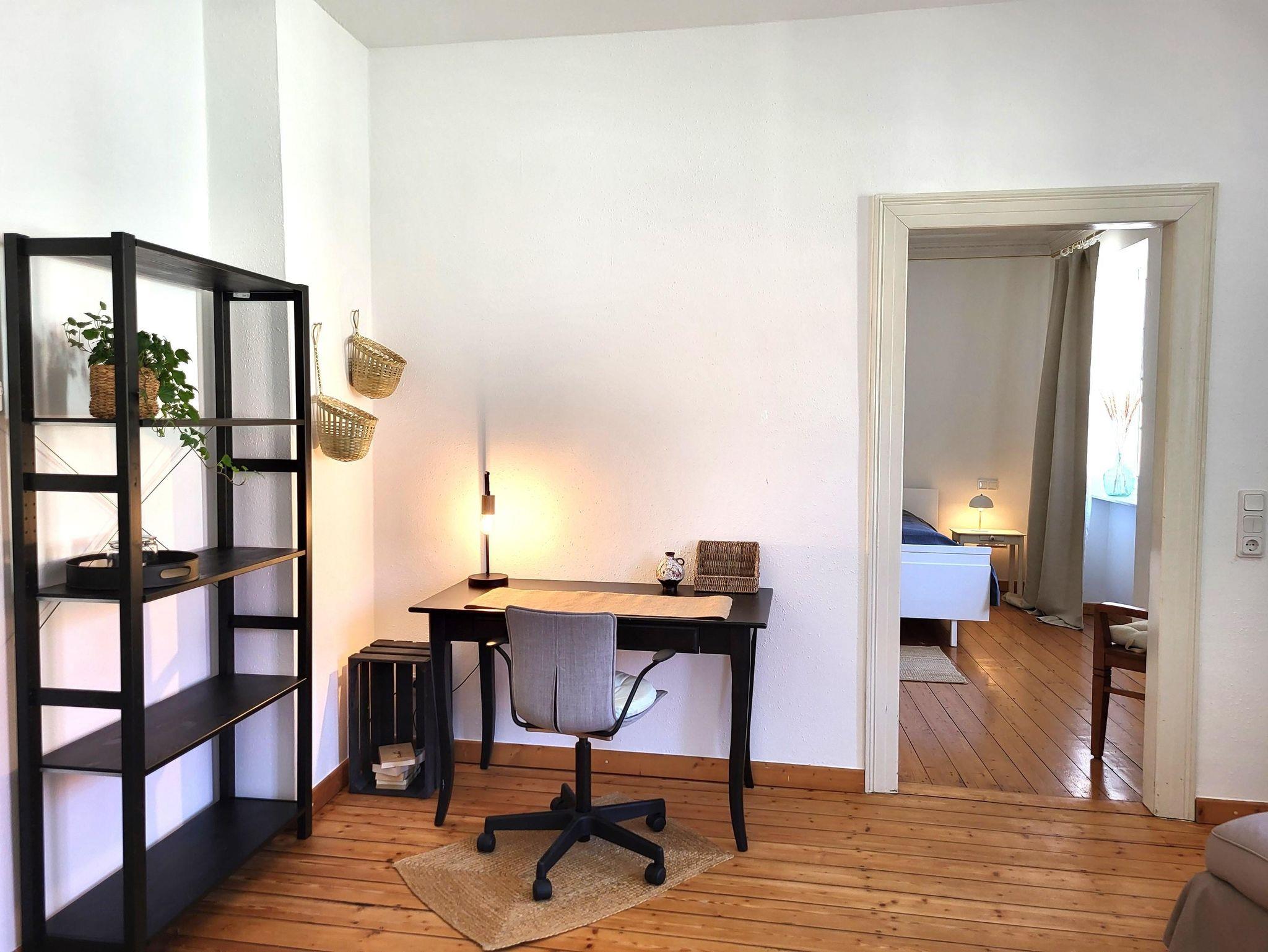 Die über einen eigenen Hauseingang (breite Treppe linksseitig am Haus) zugängliche Ferienwohnung besteht aus einer schön renovierten, großzügigen Wohnung mit hoher Altbaudeckenhöhe, zum Teil Stuckarbeiten, Holzbalkendecke und Holzdielenboden.