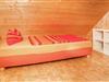 Stueetage: (Indgang , gang, åbent køkken(komfur(Komfur med to kogeplader, glaskeramisk), kaffemaskine, mikrobølgeovn, opvaskemaskine , køle-fryseskab, gaspejs), stue / spisestue(Fjernsyn, spisebord, DVD-afspiller, radio, CD-afspiller), badeværelse(bruser, håndvask, toilet)) På 1. etage: (soveværelse(køjeseng), soveværelse(2x enkeltseng)) balkon, varme, terrasse, havemøbler, grill, parkering, bordtennisbord, barnestol