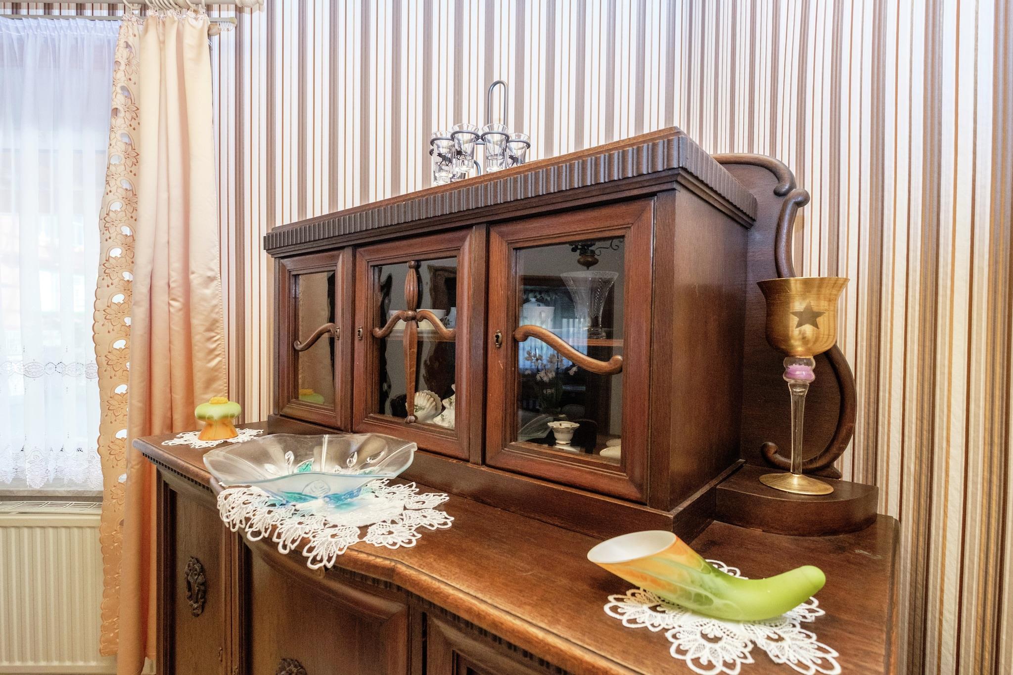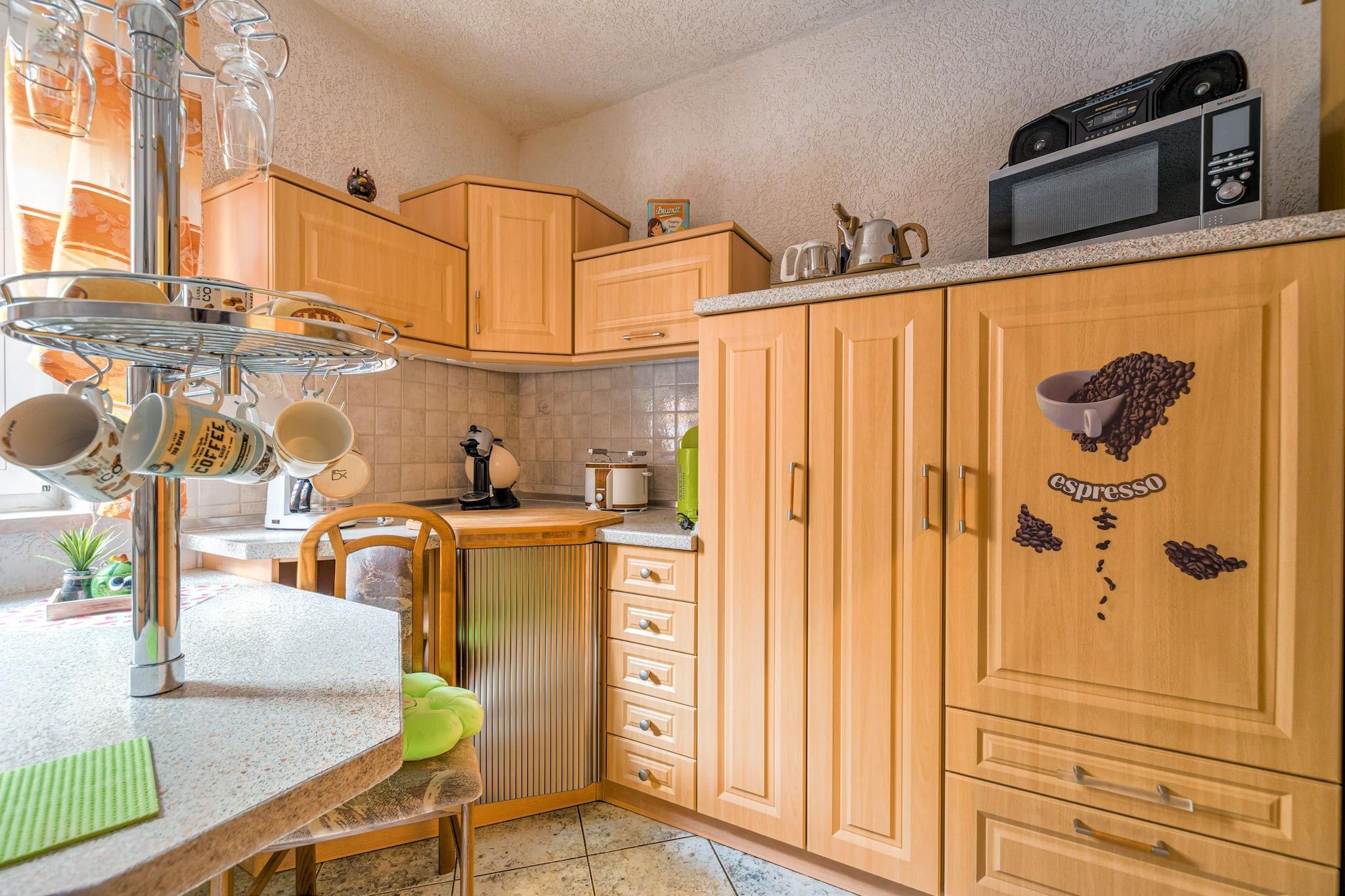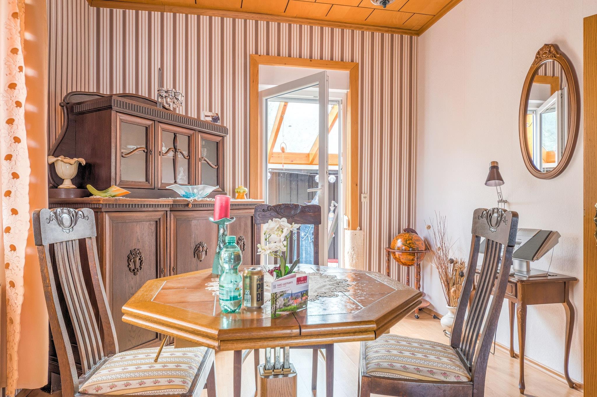 Denne hyggelige lejlighed i stueetagen i Ilsenburg tilbyder et fredeligt tilflugtssted kun 500 meter fra byens centrum og omgivet af skov. Ideel til par eller små familier, det er en perfekt base for at udforske Harzen-regionen. Nærliggende attraktioner omfatter det majestætiske Brocken-topmøde, den romantiske Ilse-dal og det historiske Wernigerode Slot. For kulturelskere byder Kloster Ilsenburg og Luftfartsmuseet på en rig lokal arv. Lejligheden har en indbydende stue, en separat spiseplads og et fuldt udstyret køkken med keramisk komfur, ovn, mikroovn og opvaskemaskine. Et komfortabelt soveværelse med dobbeltseng og et badeværelse med både badekar og bruser sikrer et afslappende ophold. Yderligere faciliteter inkluderer en betalt vaskemaskine, boblebad, komfur, kaffemaskine og børnevenlige ekstraudstyr såsom en høj stol og børneseng. Cykelopbevaring og parkering på stedet tilføjer bekvemmelighed. Omgivet af skovstier og tæt på offentlig transport, swimmingpools og skiløjper, er beliggenheden ideel til eventyr året rundt. Spisemuligheder i nærheden omfatter den rustikke Zur Waldschanke, frisk fisk og skaldyr på Mullers Fisch und Speisegaststatte og italienske favoritter på Pizza Italia.