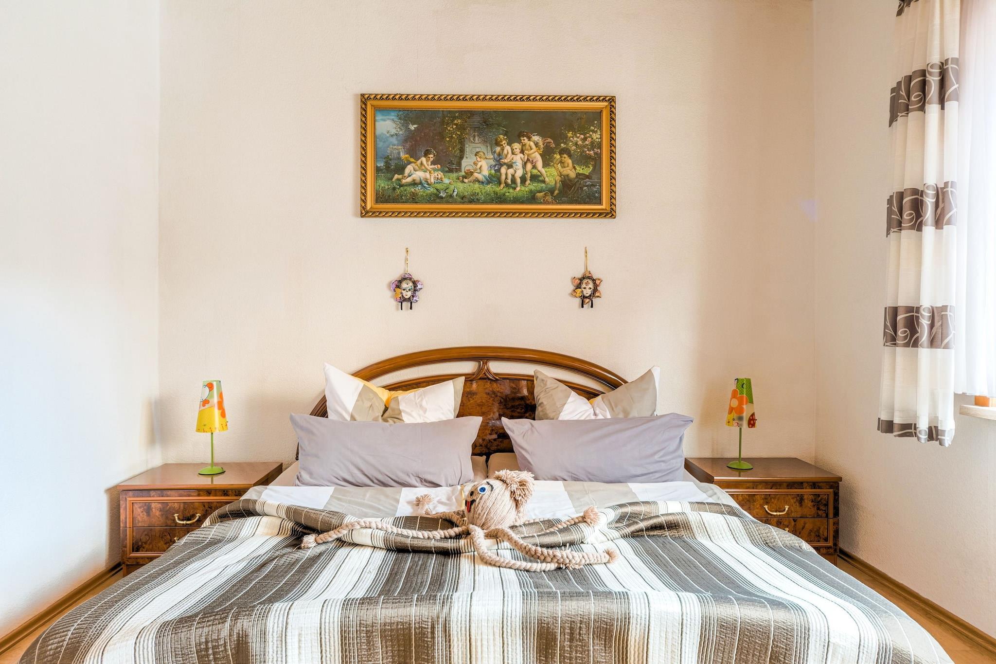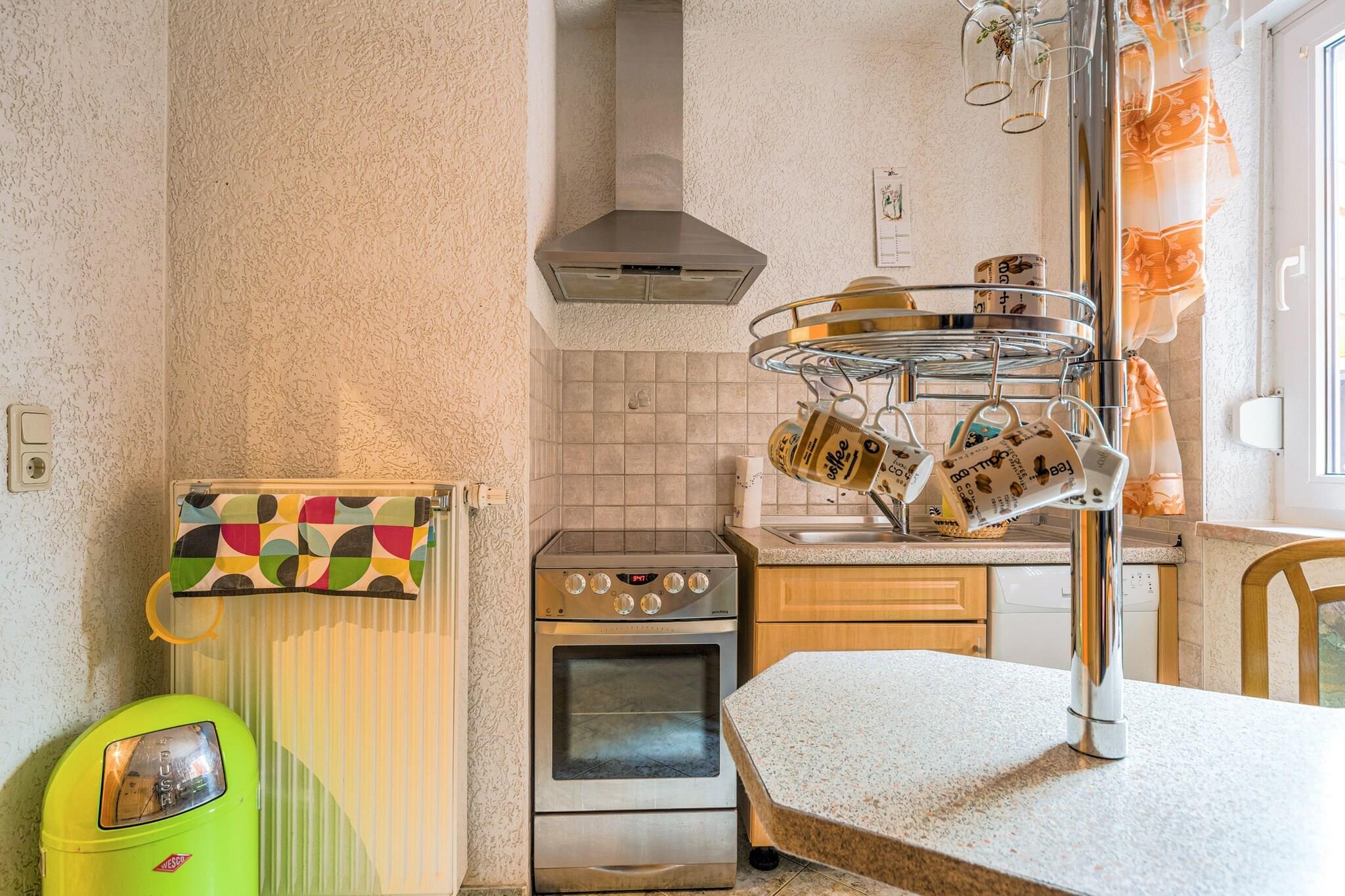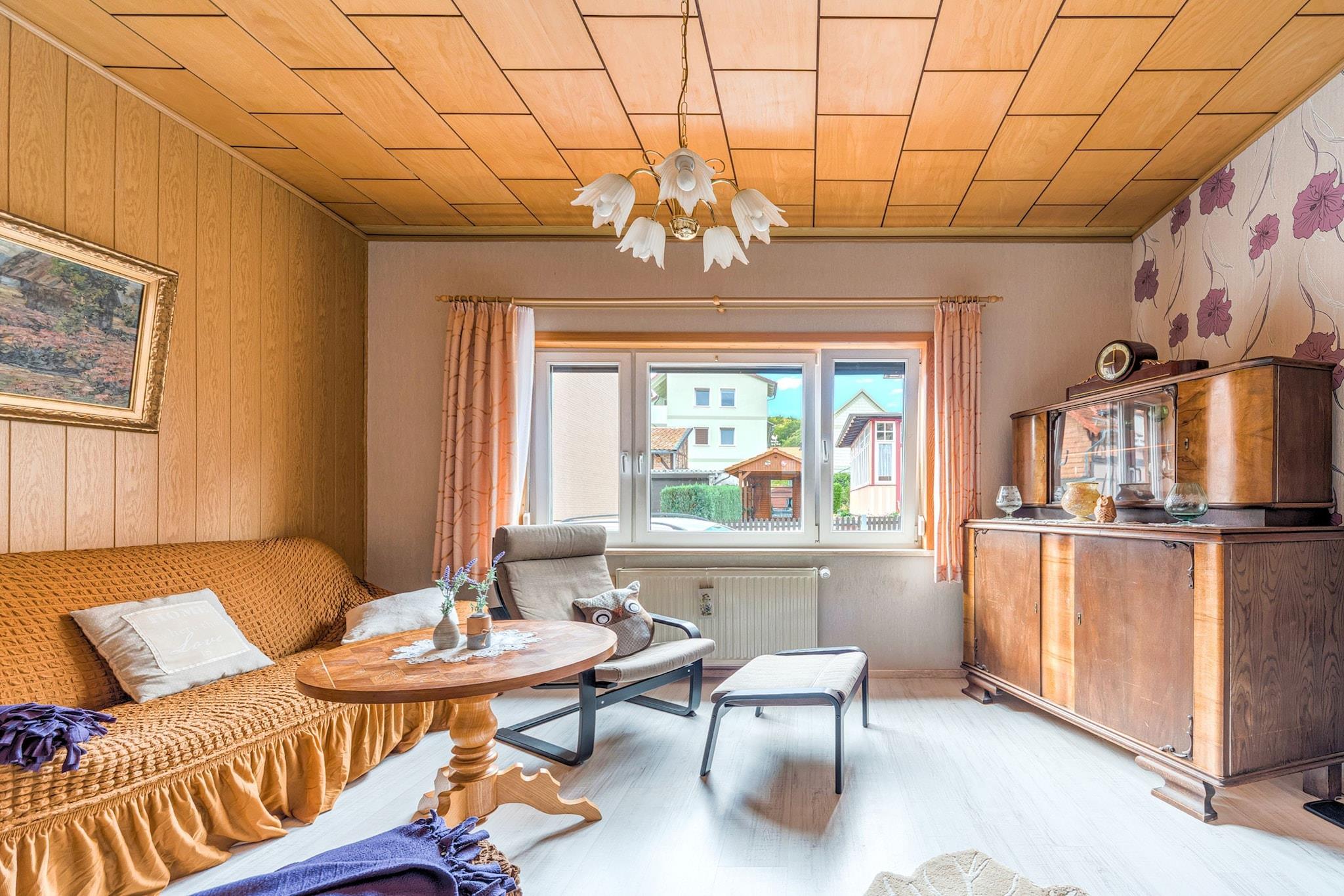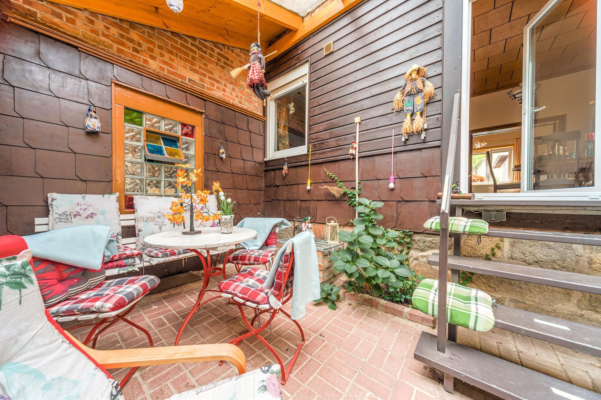 Denne hyggelige lejlighed i stueetagen i Ilsenburg tilbyder et fredeligt tilflugtssted kun 500 meter fra byens centrum og omgivet af skov. Ideel til par eller små familier, det er en perfekt base for at udforske Harzen-regionen. Nærliggende attraktioner omfatter det majestætiske Brocken-topmøde, den romantiske Ilse-dal og det historiske Wernigerode Slot. For kulturelskere byder Kloster Ilsenburg og Luftfartsmuseet på en rig lokal arv. Lejligheden har en indbydende stue, en separat spiseplads og et fuldt udstyret køkken med keramisk komfur, ovn, mikroovn og opvaskemaskine. Et komfortabelt soveværelse med dobbeltseng og et badeværelse med både badekar og bruser sikrer et afslappende ophold. Yderligere faciliteter inkluderer en betalt vaskemaskine, boblebad, komfur, kaffemaskine og børnevenlige ekstraudstyr såsom en høj stol og børneseng. Cykelopbevaring og parkering på stedet tilføjer bekvemmelighed. Omgivet af skovstier og tæt på offentlig transport, swimmingpools og skiløjper, er beliggenheden ideel til eventyr året rundt. Spisemuligheder i nærheden omfatter den rustikke Zur Waldschanke, frisk fisk og skaldyr på Mullers Fisch und Speisegaststatte og italienske favoritter på Pizza Italia.