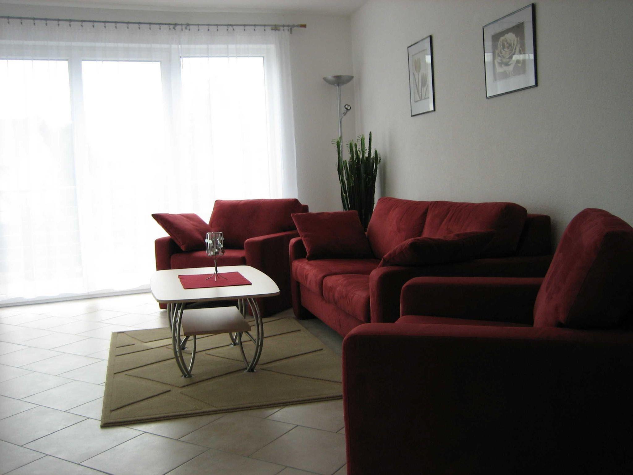 großzügige, helle und komplett ausgestattete 2-Zimmer-Wohnung im Obergeschoß, mit einem separaten Schlafzimmer, sowie einer ausziehbaren Schlafcouch im Wohnzimmer ( für max. 4 Personen). Süd-Ost-Lage, Südbalkon. Diese Wohnung liegt zur Straße zu, wohl eine wenig befahrene Nebenstraße. Es befindet sich in nächster Nähe ein Supermarkt, der sehr positiv angenommen wird ( separater Bäcker vorhanden ), es finden aber tagsüber Anlieferungen statt.
