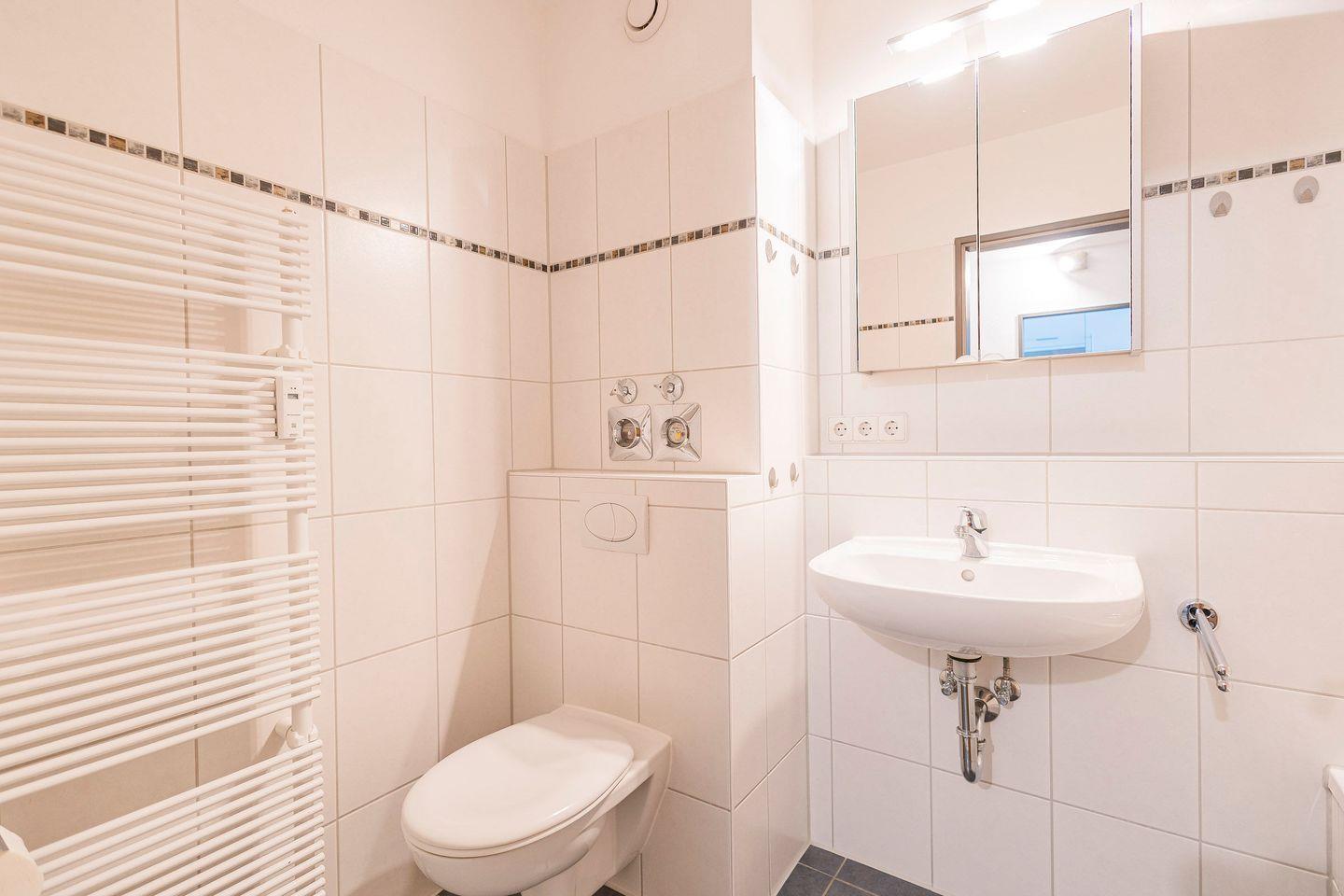 Die ruhige, helle 2-Zimmer-Wohnung (ca. 50 qm) befindet sich im ersten Obergeschoss in Westausrichtung.