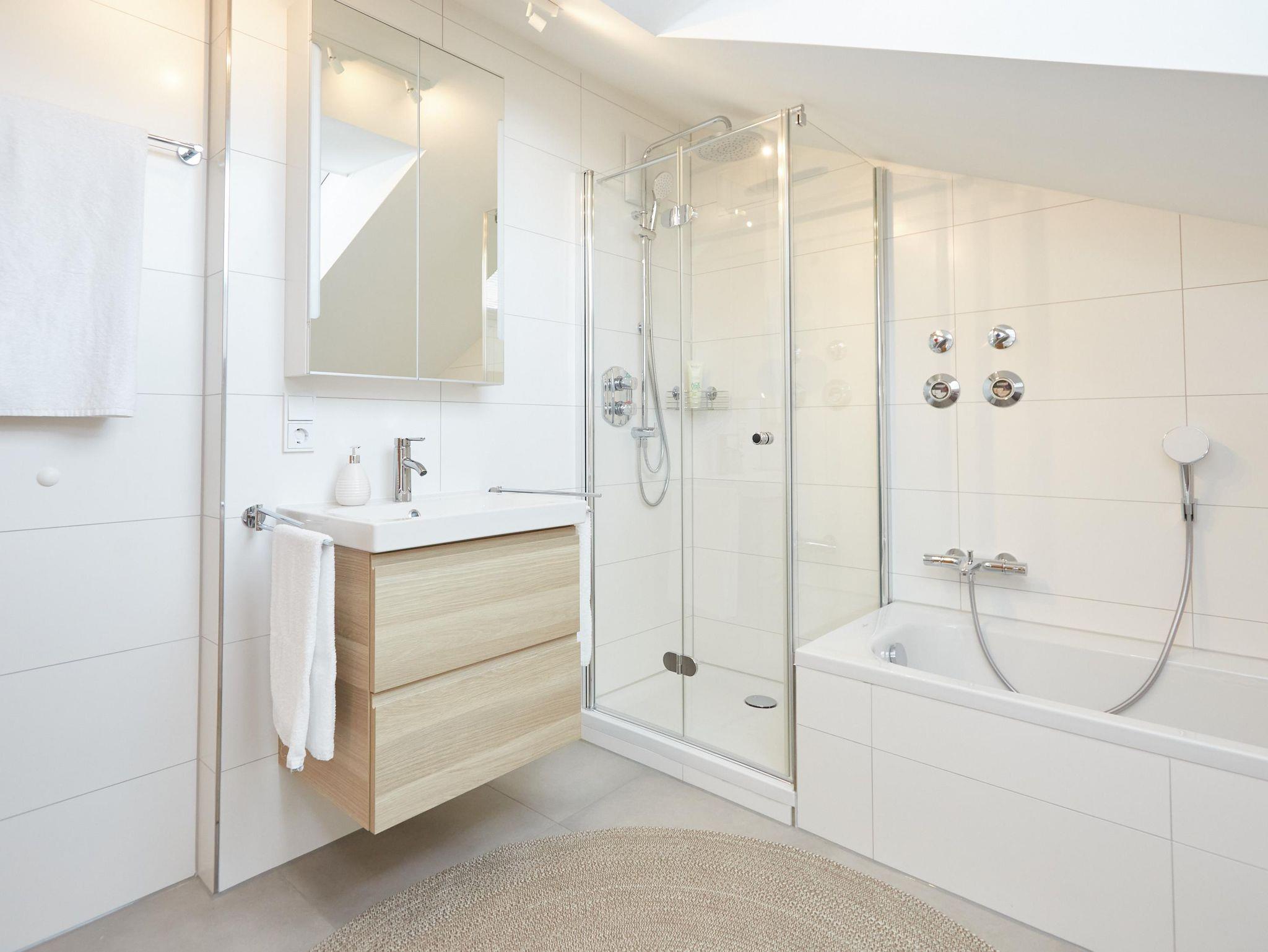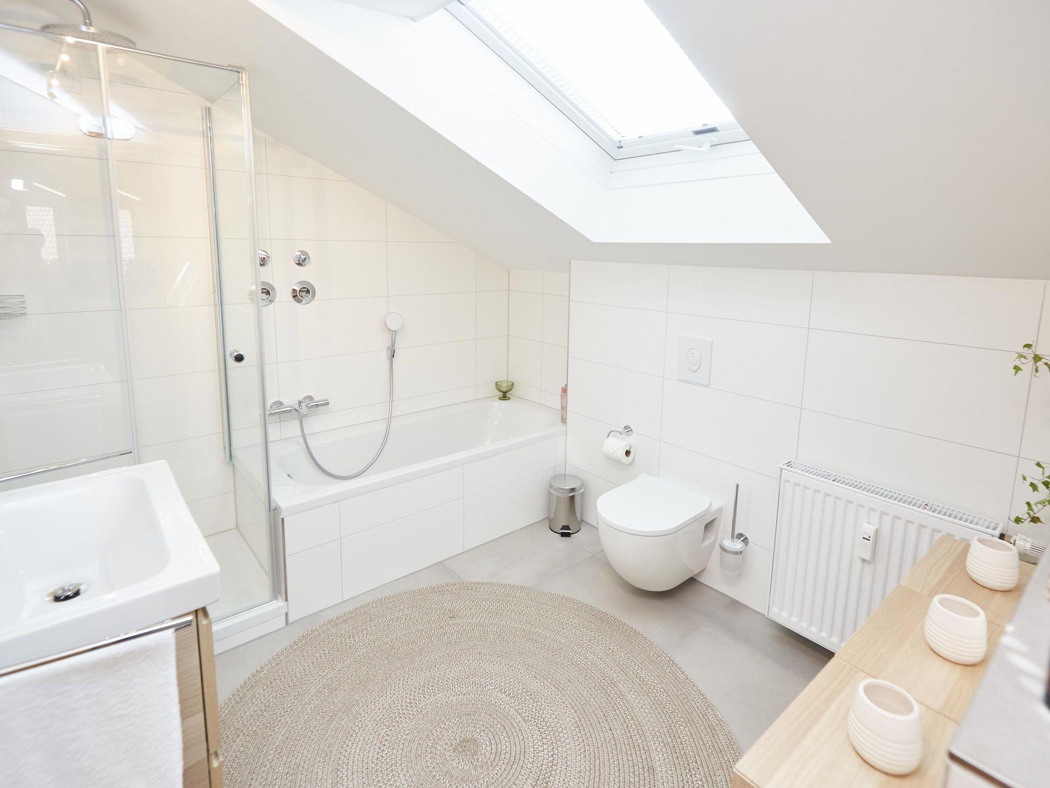 Im Bad findest Du eine Badewanne, Dusche und ein WC, sowie ein separates WC.