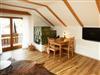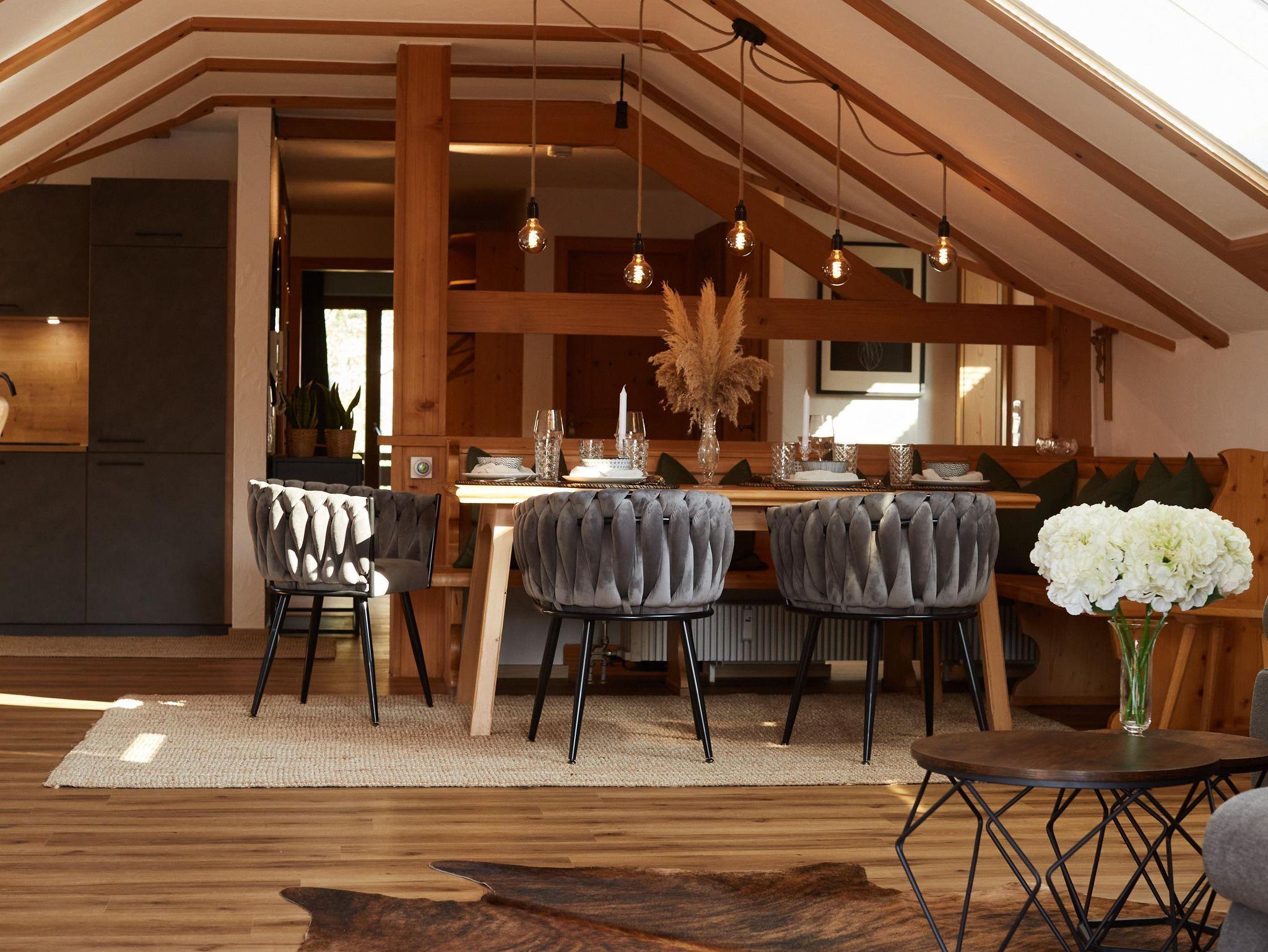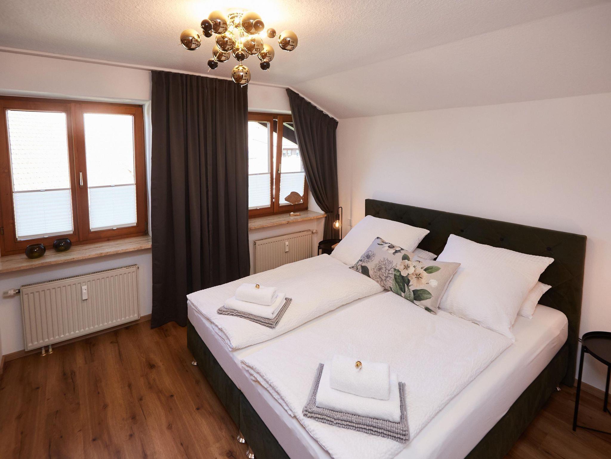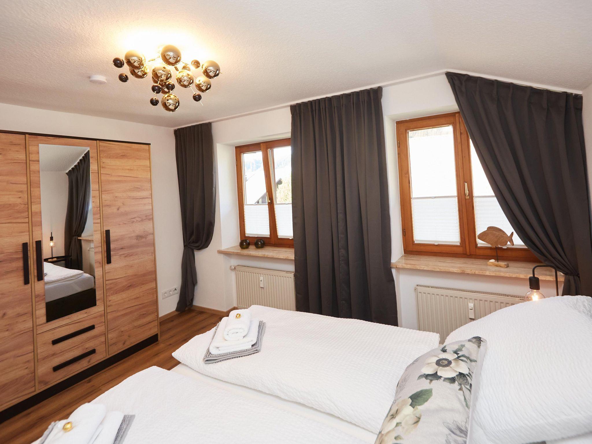 Die 90 m² große, im alpinen Lifestyle eingerichtete Dachgeschosswohnung bietet mit seinen zwei Schlafzimmern mit Kingsize Boxbetten und einer gemütlichen Couch Platz für bis zu vier Personen plus ein Kleinkind bis zu 3 Jahren, für welches wir auf Anfrage ein Reisebett und einen Hochstuhl gegen eine einmalige Gebür von 20,-€ zur Verfügung stellen.