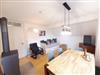 Wohnzimmer: Schwedenofen, Flachbild-TV, großer Esstisch und 6 Sitzgelegenheiten, ausziehbares Couchbett (mit richtigen Matratzen)