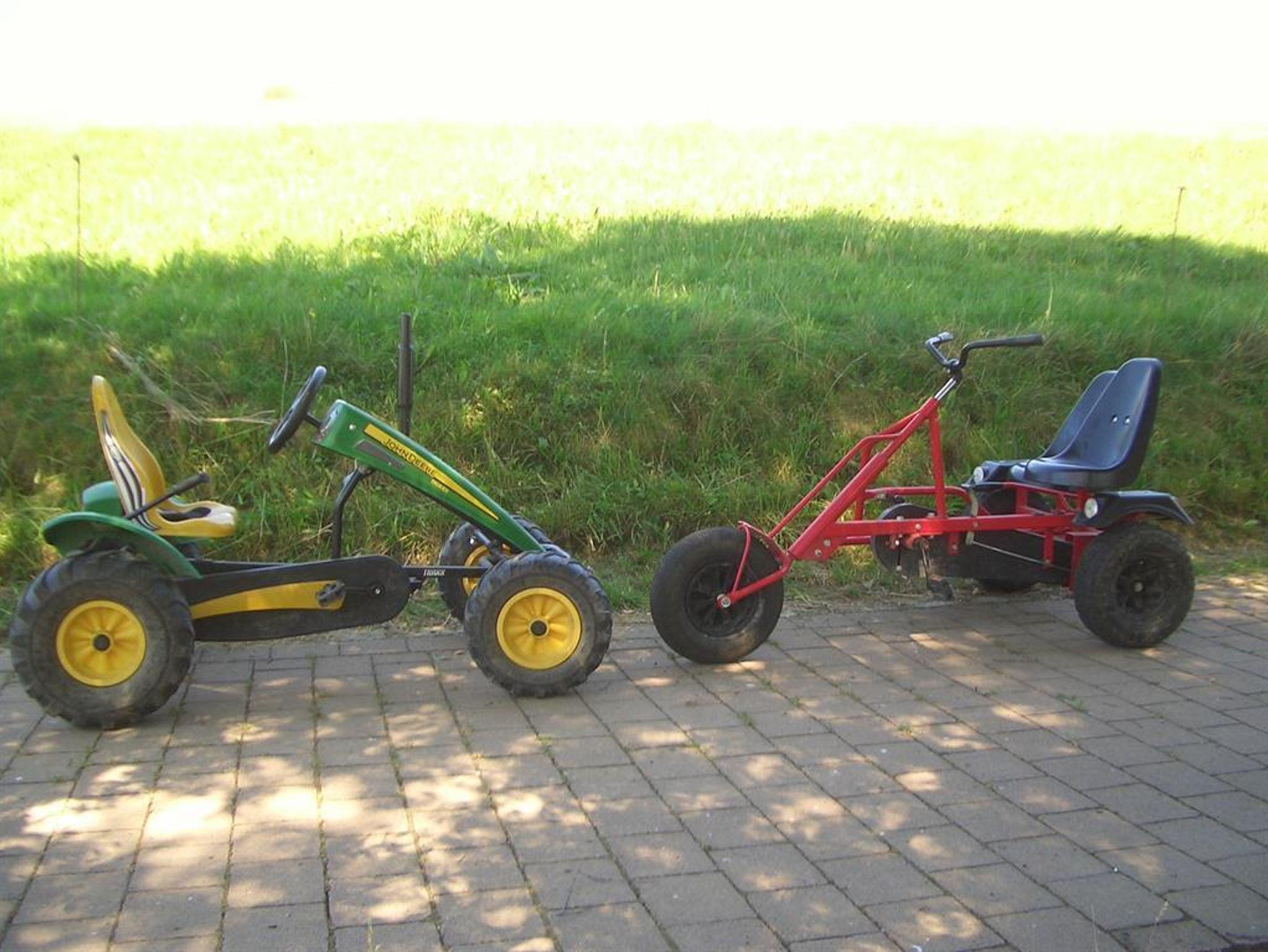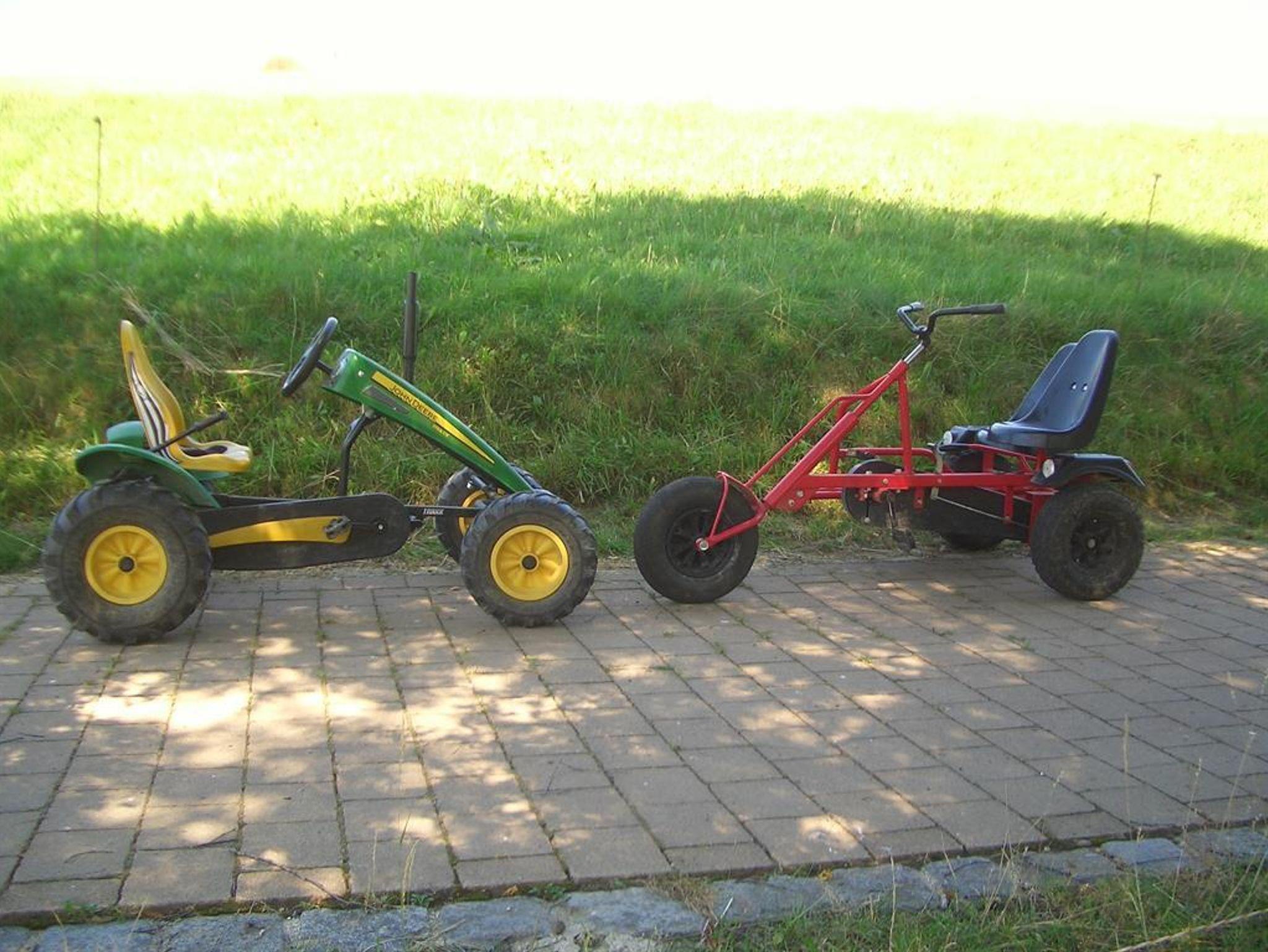 Spülmaschine, Elektroherd, Kühlschrank mit Eisfach, Toaster, Eierkocher, Kaffeemasch., Wasserkocher, Mikrowelle, Fön, Radiowecker, Kinderspiele, Kleinkinderfahrzeuge (Traktor, Bobbycar, Dreirad, große Dino-Fahrzeuge), Kikerkasten und Tischtennisplatte, Trampolin, Spiellanschaft mit 1 Sandkasten und Schaukeln, 2 gr. Gokards