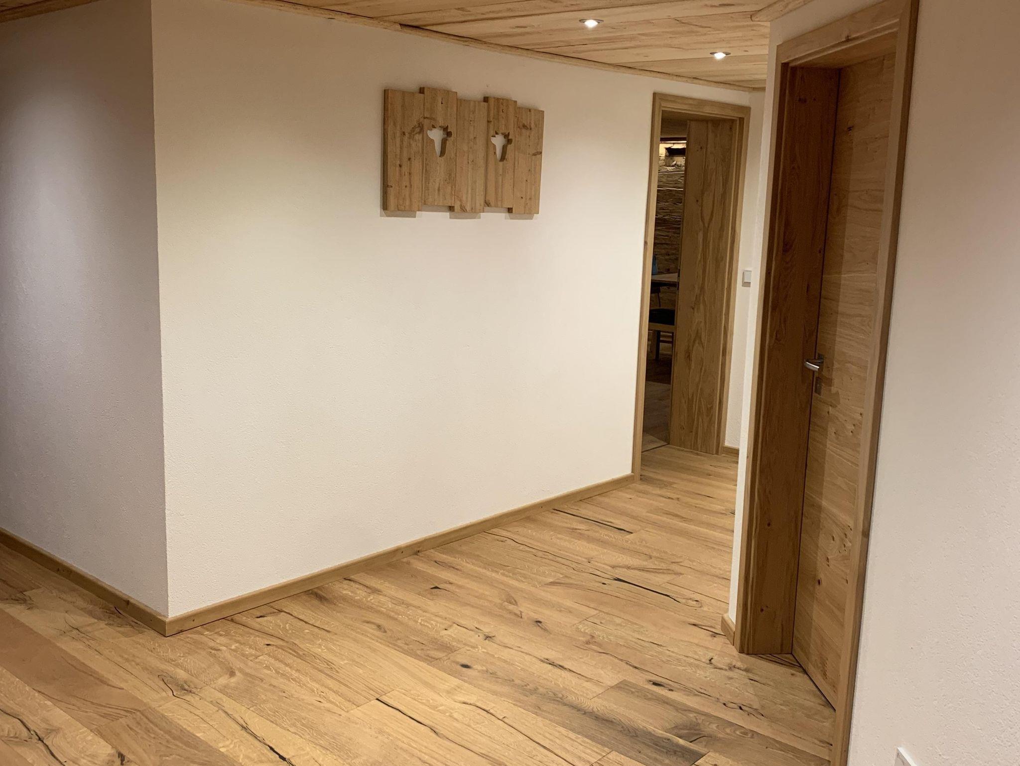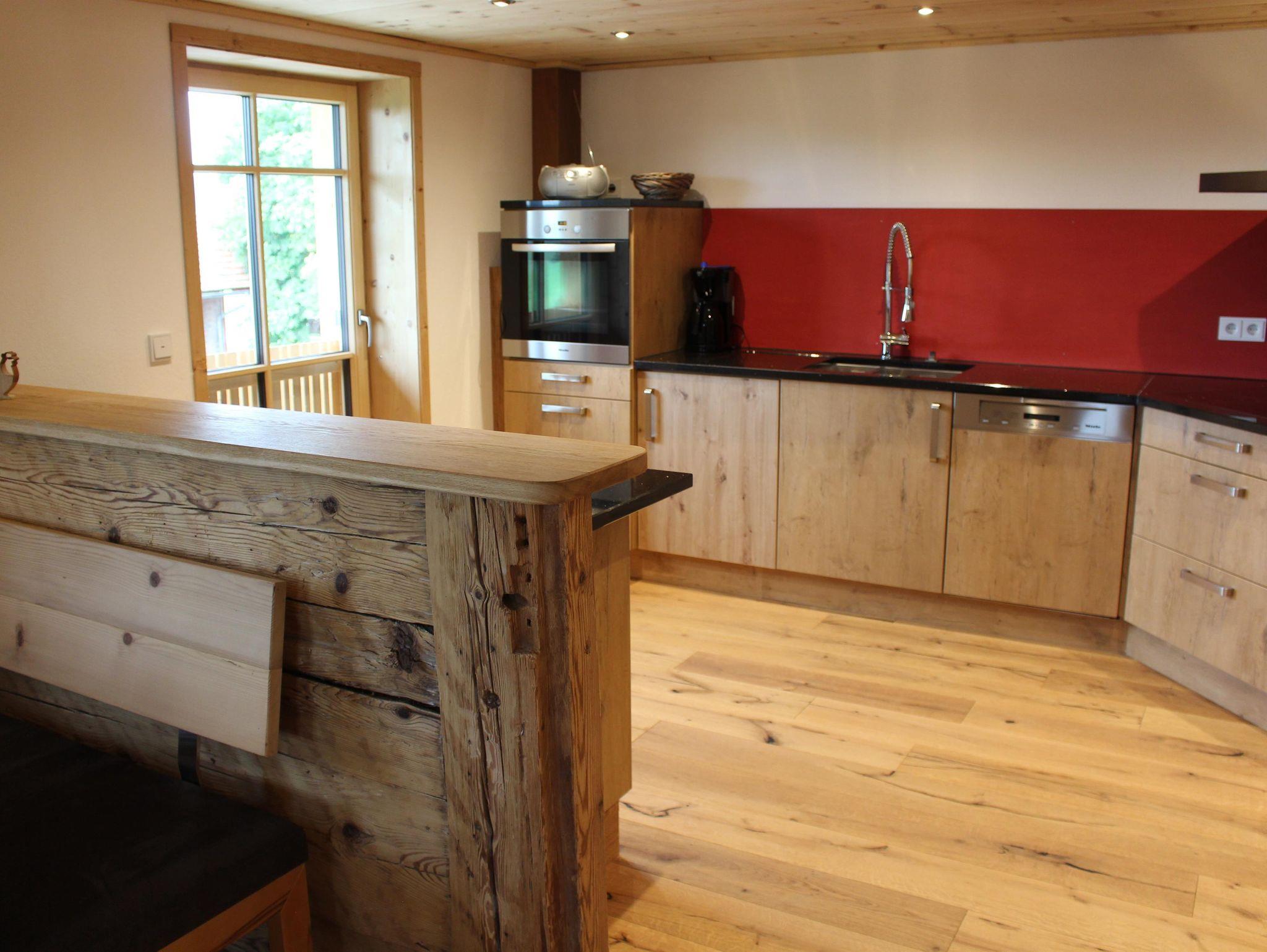 Ferienwohnung I (bis 5 Personen) enthält 2 Schlafzimmer (mit 2 Doppelbetten und 1 Einzelbett) und 2 Fernseher, moderne Wohnküche mit Couchgarnitur, 2 Bäder mit WC und Dusche und einen Südbalkon mit herrlicher Aussicht auf den Grünten.