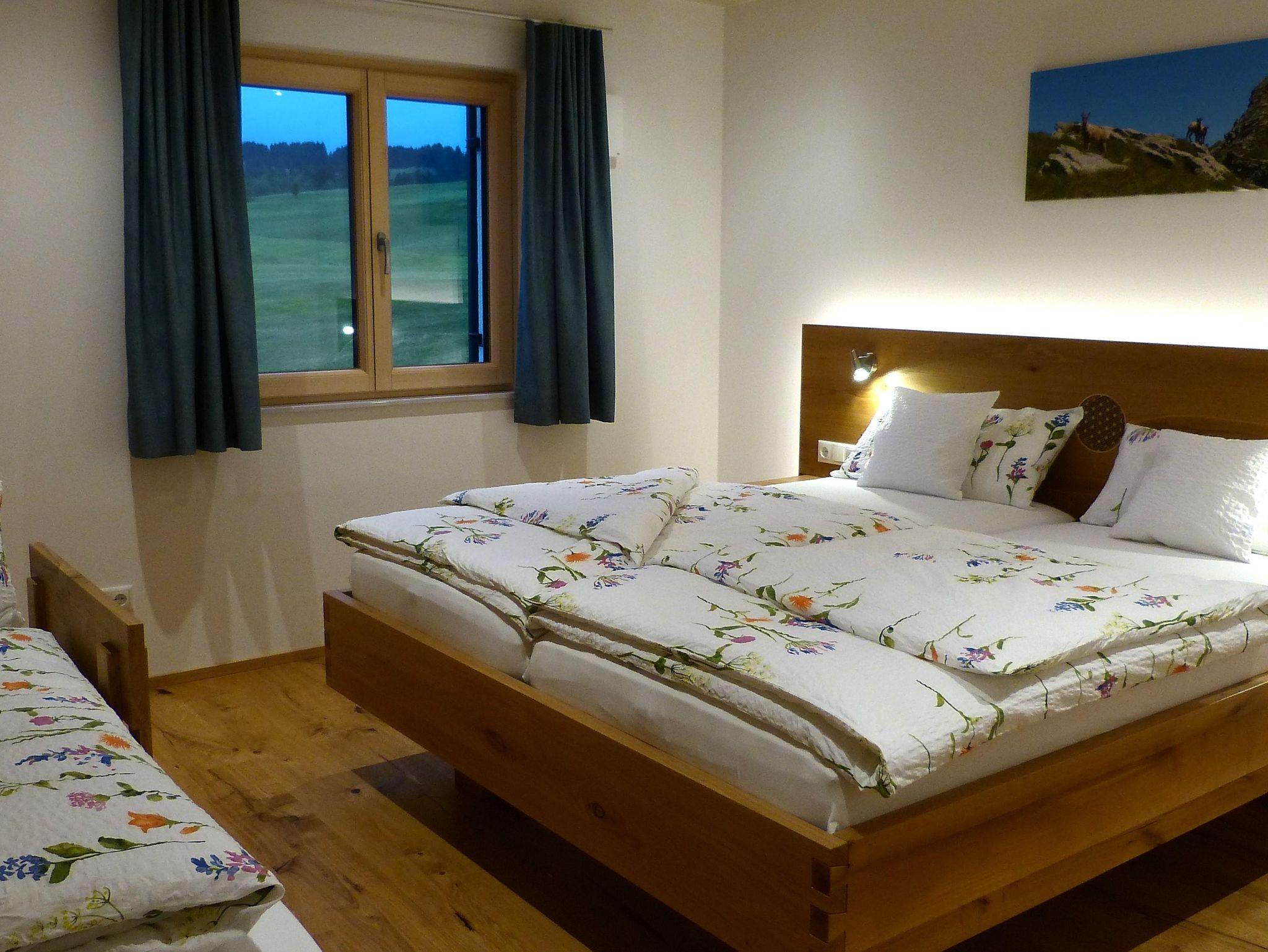Unser neu erbautes Landhaus auf 820 m Meereshöhe in Alleinlage vor dem kleinen Dorf Akams bietet drei hochwertige, mit Liebe ausgestattete Ferienwohnungen. Die Möbel hat ein Allgäuer Schreiner in Handarbeit gefertigt. Unsere Highlights sind der Rundumblick in die Allgäuer Alpen und die freie Lage an einem Südhang, die dir Sonne vom Morgen bis zum Abend bietet.