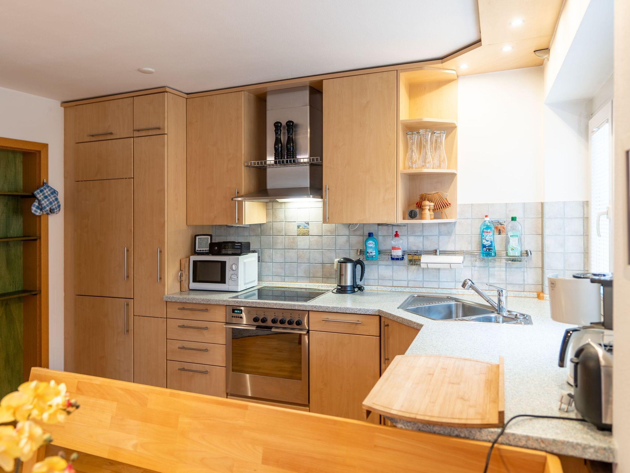 Das Badezimmer ist mit Dusche, Badewanne, WC und Föhn ausgestattet. Die Küche verfügt über ein Cerankochfeld, Backofen, Kaffeemaschine, Wasserkocher, Toaster uvm. und lässt keine Wünsche offen.