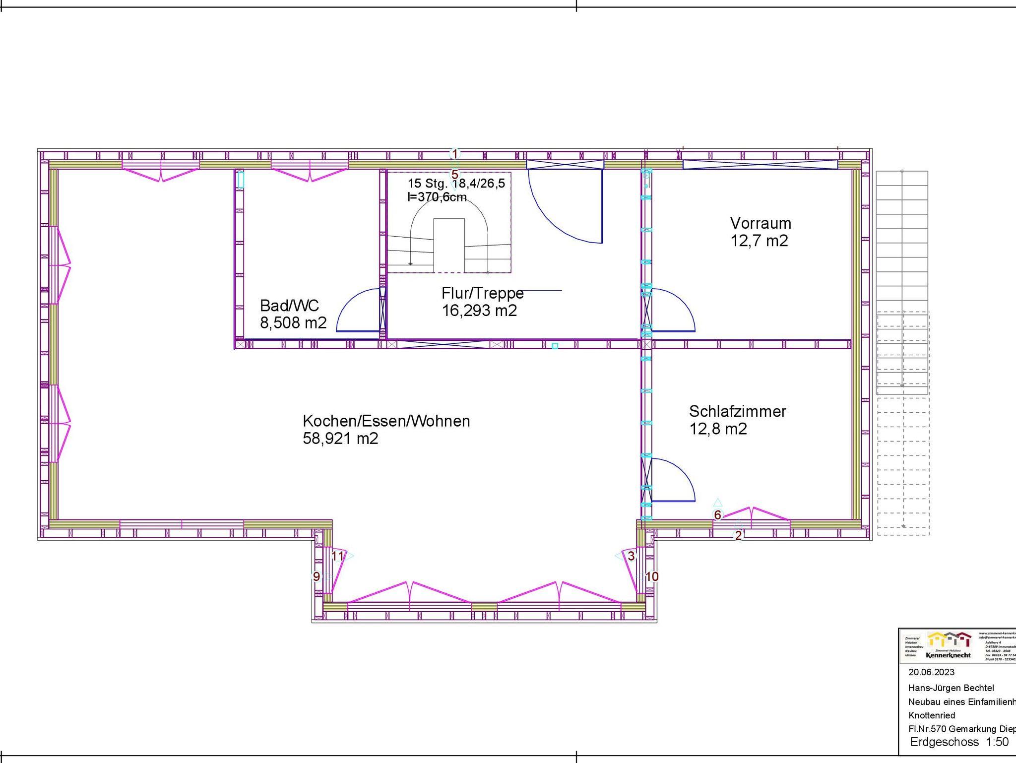 Das Haus wurde im Juni 2023 fertiggestellt. Die Raumaufteilung ist sehr hell und großzügig. Die sichtbaren Massivholzwände, die Holzbalkendecke, der offene Dachstuhl sowie die hochwertige und moderne Ausstattung tragen zu einer außergewöhnlichen Atmosphäre bei.