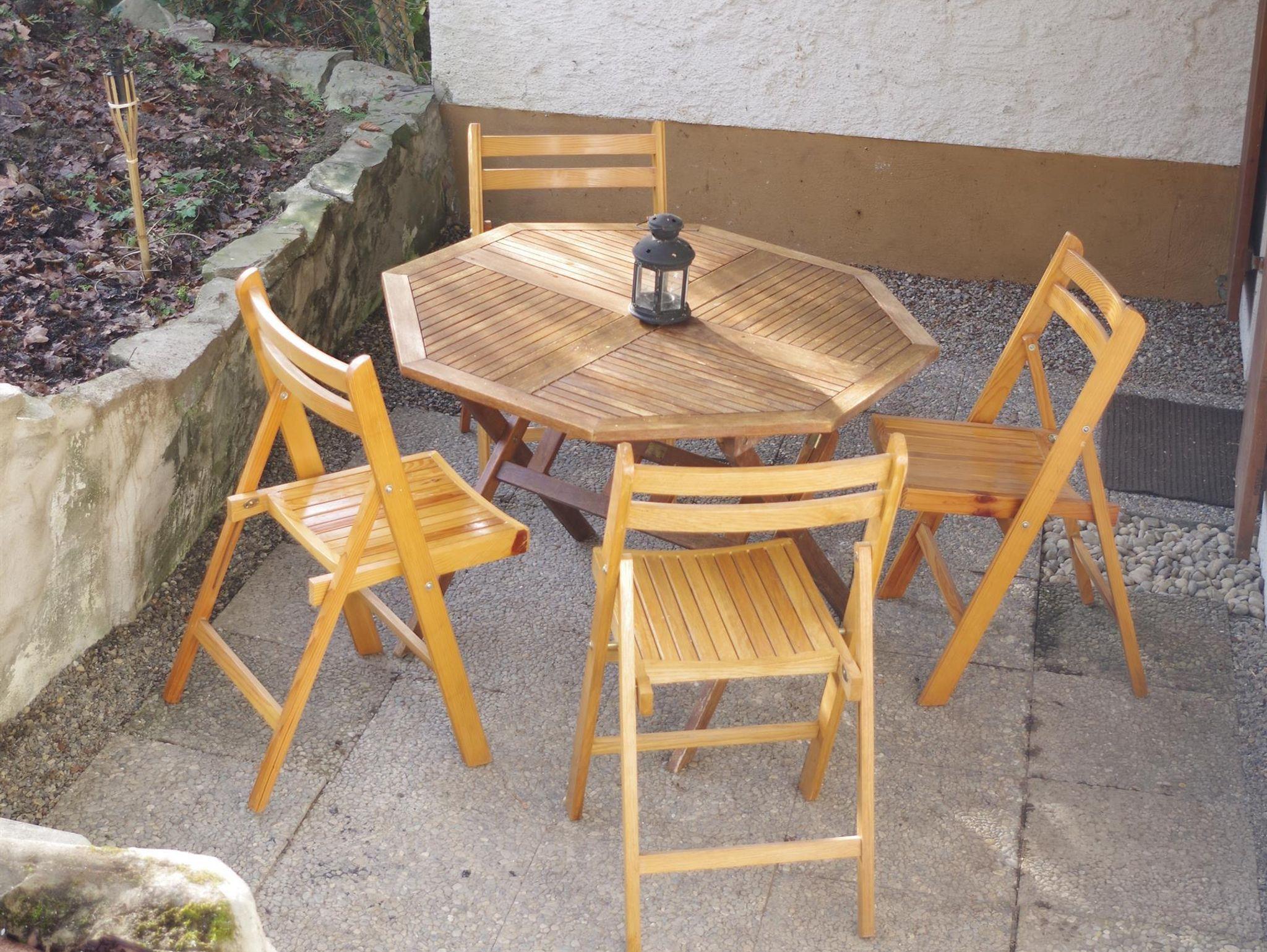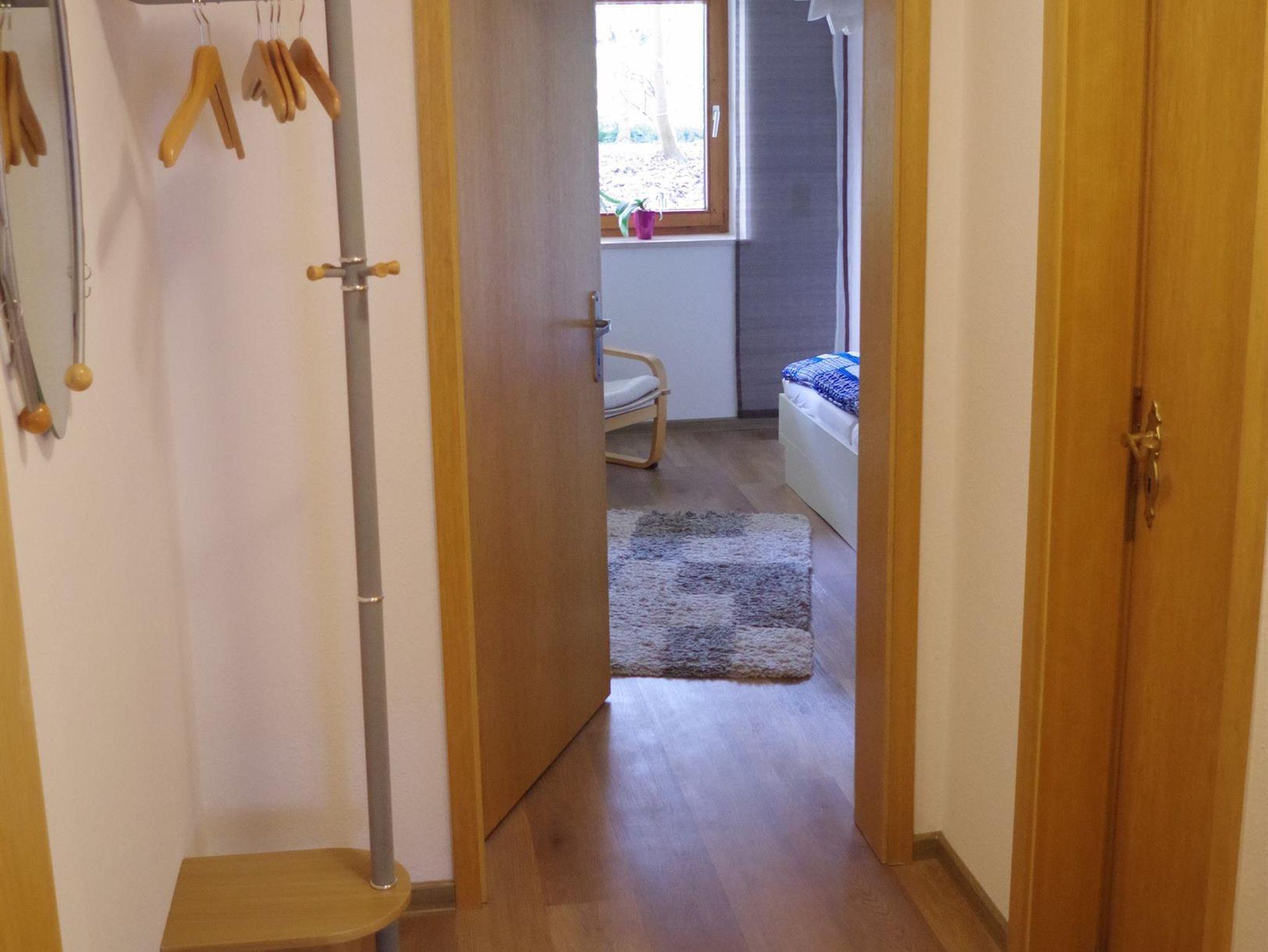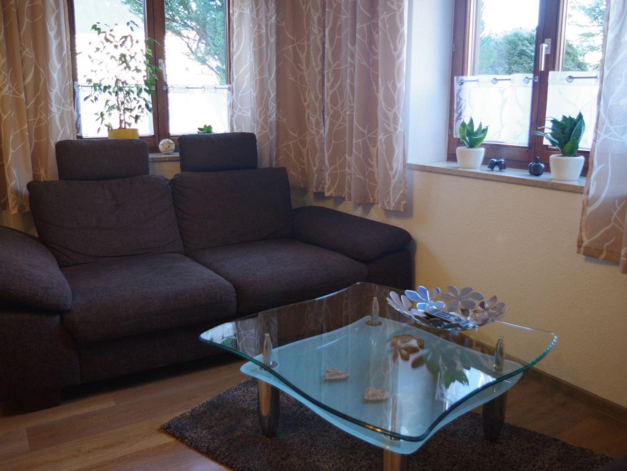 Unsere 53m² Ferienwohnung befindet sich im Erdgeschoss unseres Wohnhauses. 2019 wurde die liebevoll eingerichtete Wohnung komplett renoviert. Zum Wohnzimmer gehört eine Küchenzeile, die mit Spülmaschine, Elektroherd, Kühlschrank, Toaster, Wasserkocher, Filterkaffeemaschine und Tassimo-Kaffeemaschine ausgestattet ist. Ein großer Esstisch, sowie Couch und Flat-TV runden die gemütliche Atmosphäre ab. 2 Schlafzimmer (1 Doppelbett und 2 getrennte Betten, welche zusammengestellt werden können) bieten Platz für bis zu 4 Personen. Die 2 Bäder verfügen jeweils über Dusche, Waschbecken und WC. Auf der Gästeterasse, welche durch das große Schlafzimmer erreichbar ist, lässt sich der Tag in Ruhe ausklingen. Ein PKW-Stellplatz befindet sich direkt vorm Haus.
