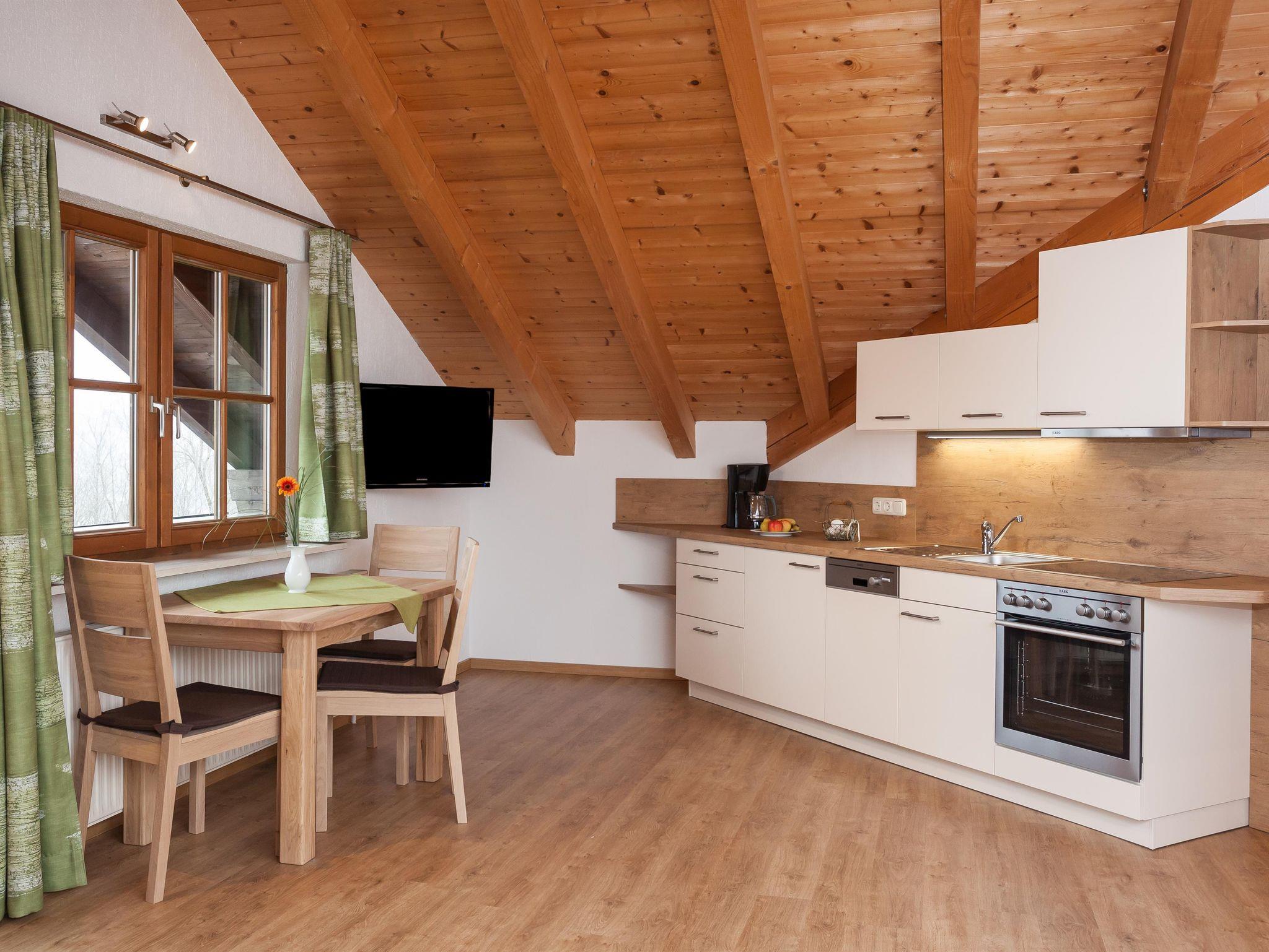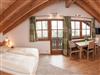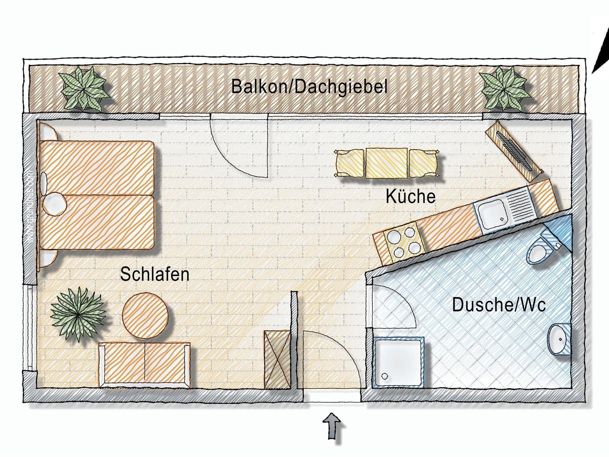 Die Ferienwohnung Ergelweg ist ein gemütliches Dachstudio mit sichtbarem Dachstuhl und Nord-West-Balkon. Die Wohnung ist ausgestattet mit einem Wohn- / Schlafzimmer, einer Küchenzeile mit Spülmaschine, Essecke, TV sowie Bad mit Dusche und WC.