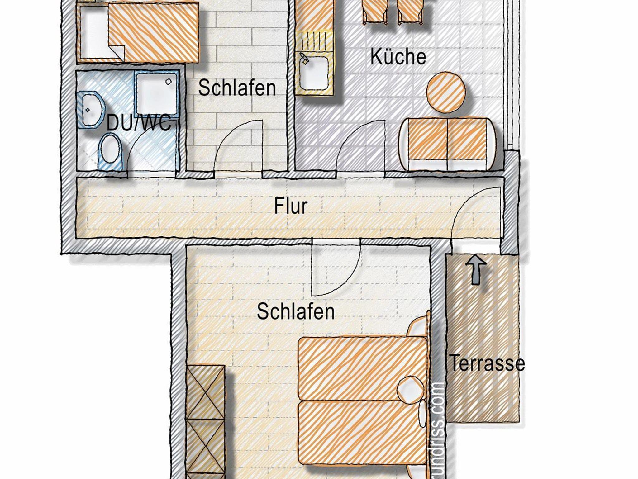 Ideal für Familien - Die Ferienwohnung Blumenwiese liegt ebenerdig und besteht aus zwei Schlafzimmern, Wohnküche mit Spülmaschine, Backofen, Mikrowelle, TV, Du/Wc und einem separaten Eingang über die Terrasse.