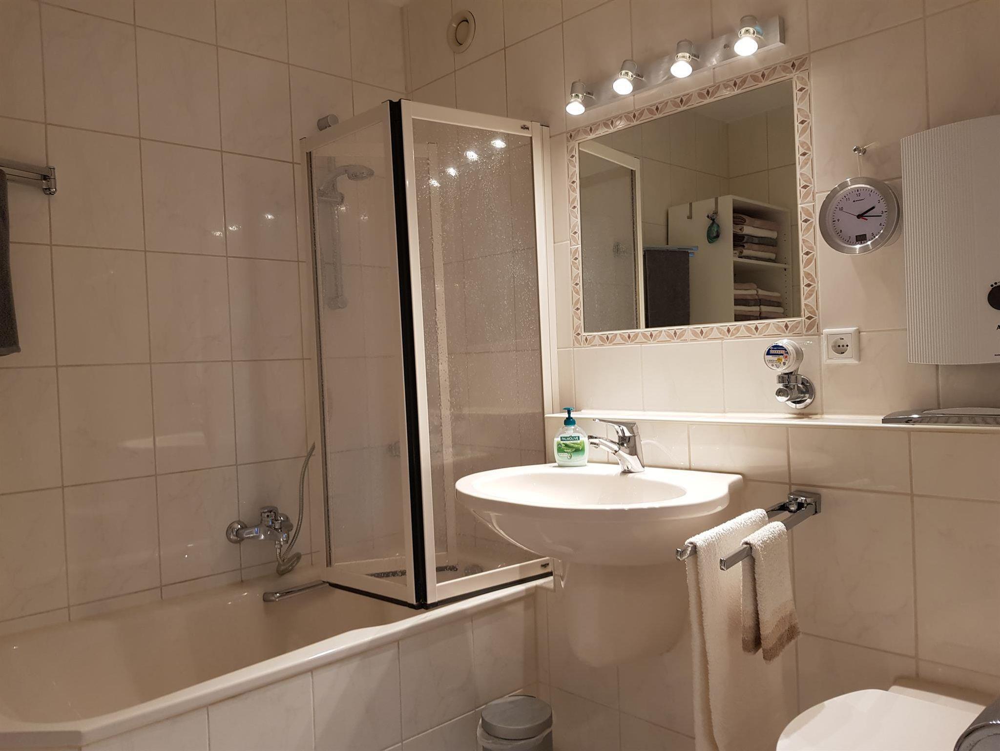 Die Küche ist mit Geschirr und weiterem Zubehör vollständig ausgestattet, einschließlich Backofen, Spülmaschine, Wasserkocher, Toaster und Kaffeemaschine. Ich stelle Ihnen eine Grundausstattung bestehend aus Essig, Öl, Gewürzen, Salz, Zucker und Filtertüten zur Verfügung.