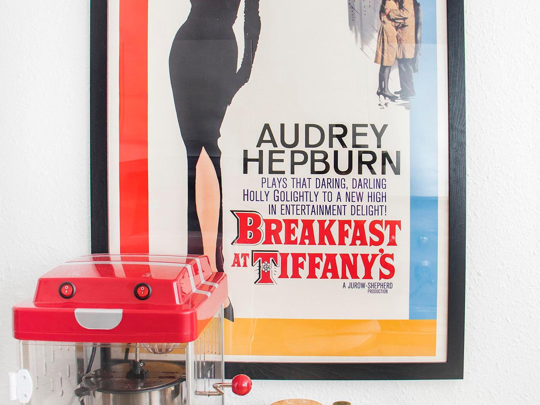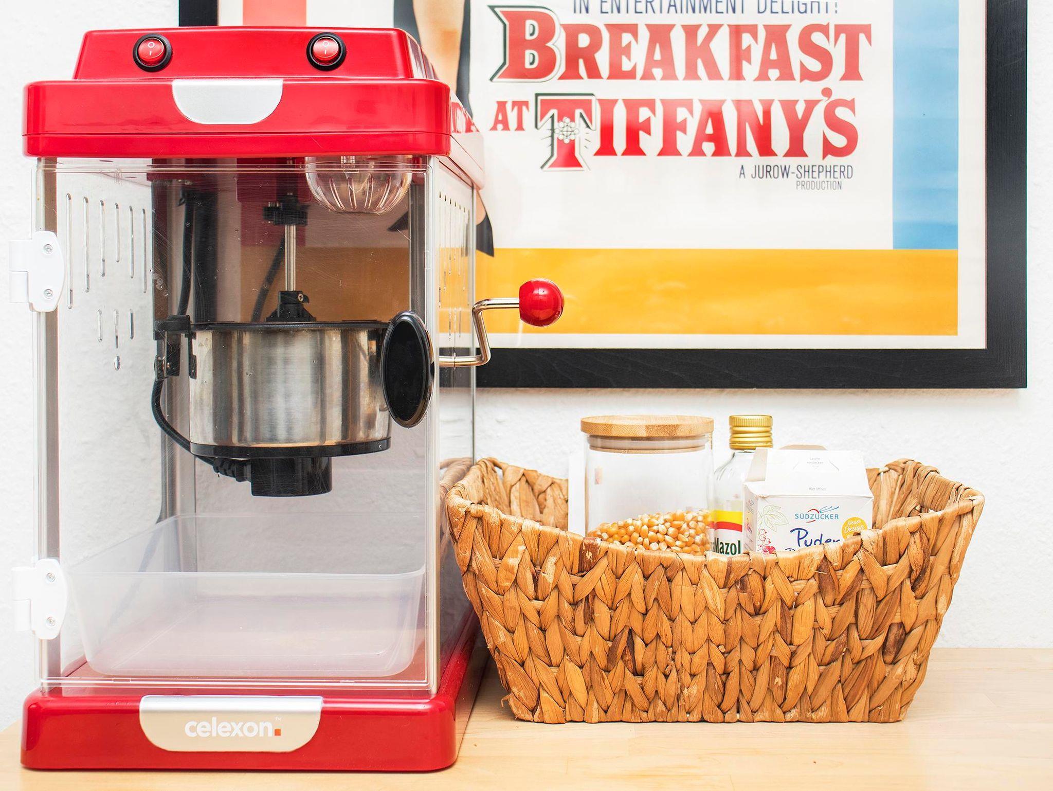 • Beamer im Schlafzimmer für entspannte Filmabende, begleitet von frischem Popcorn aus der Popcornmaschine.