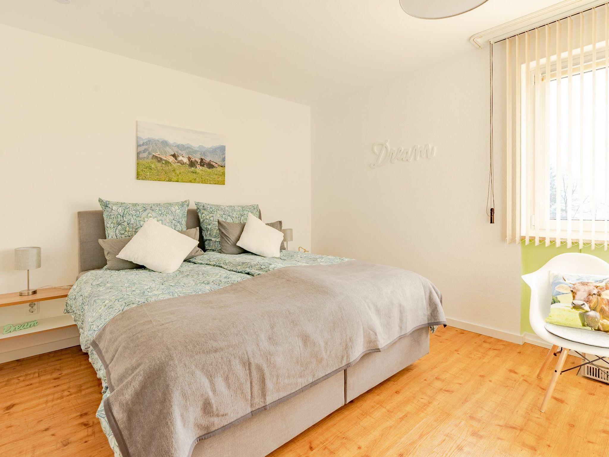 Der Wohnraum ist hell und modern eingerichtet. Sie finden hier eine gemütliche Sitzecke mit Couchtisch, wo Sie entspannen und das TV-Programm genießen können. Hier gelangen Sie auch auf den grosszügig angelegten Balkon, von welchem Sie eine phantastische, unverbaute Sicht in die Berge haben. Bei einem Gläschen Wein können Sie hier den Tag entspannt ausklingen lassen. Das Schlafzimmer ist mit einem Doppelbett und einem 3-türgen Kleiderschrank ausgestattet und bietet ausreichend Stauraum für Ihre Urlaubsgarderobe. Auch die geräumige Küche bietet Ihnen alle Möglichkeiten, um Ihr Talent als Hobbykoch zu erproben. Der schöne Essplatz in der Küche am Fenster lädt nicht nur zu den Mahlzeiten ein, sondern auch zum Spielen und Verweilen. Ebenfalls wird das schöne Bad Ihre Zustimmung finden.