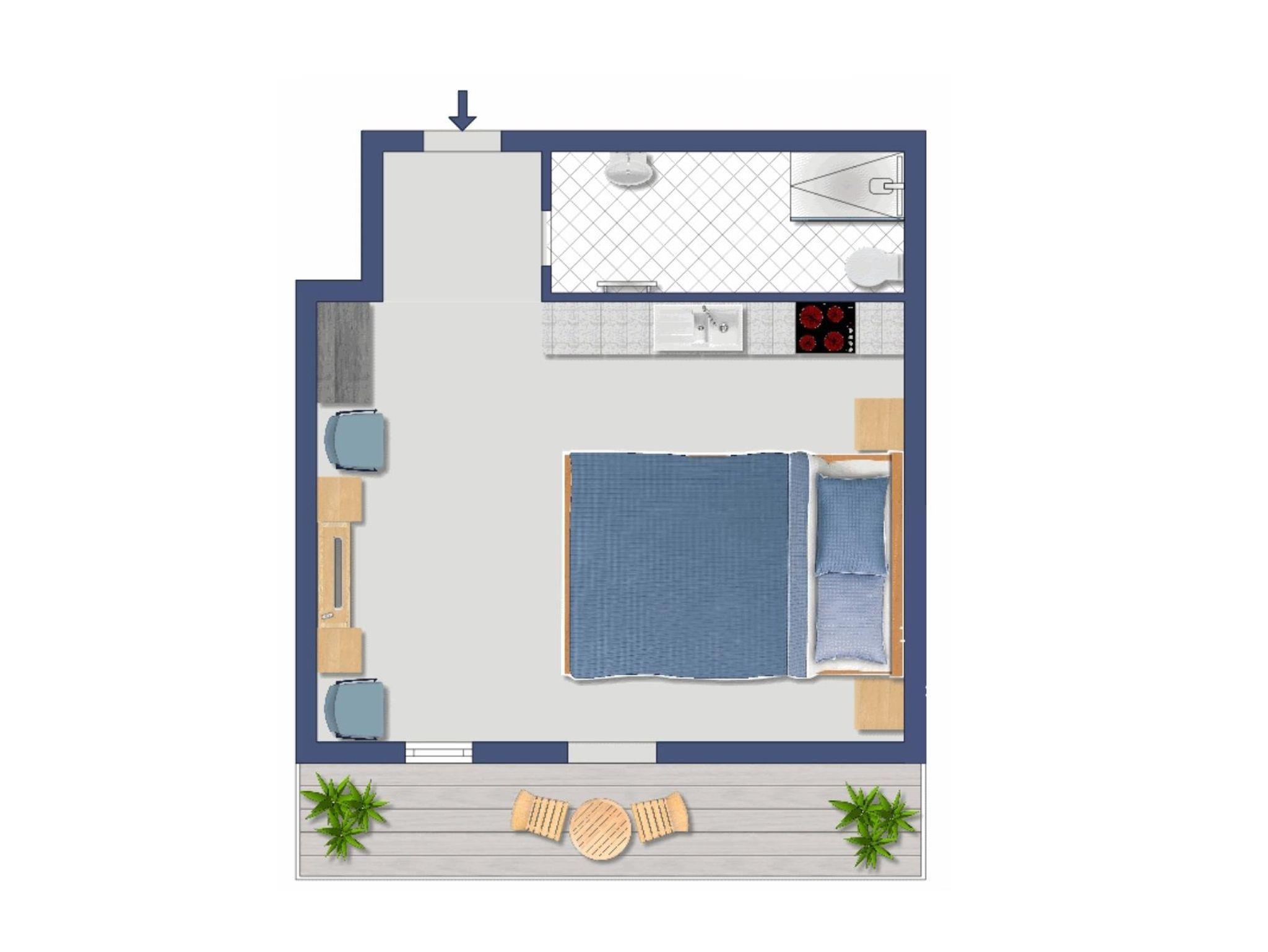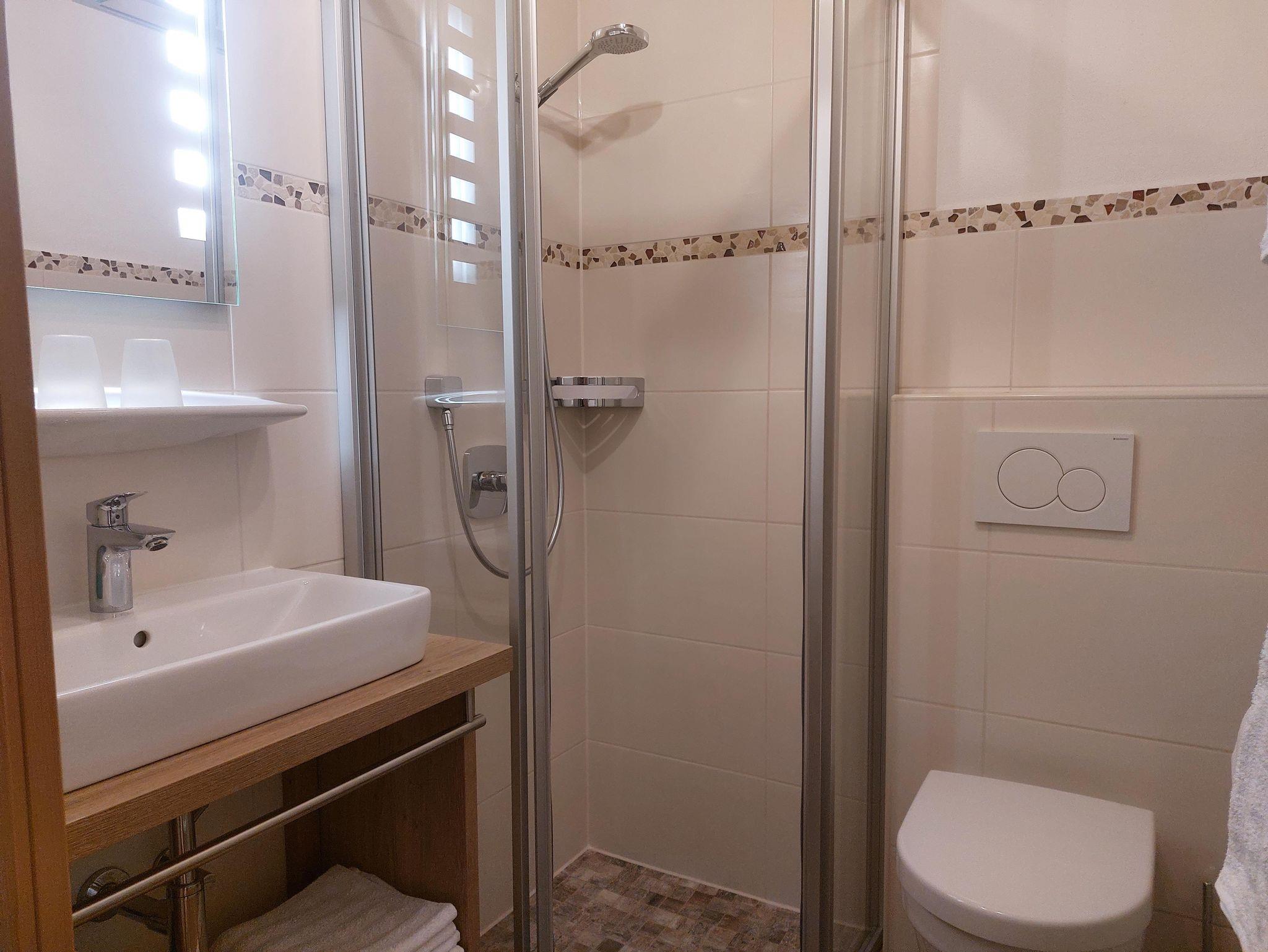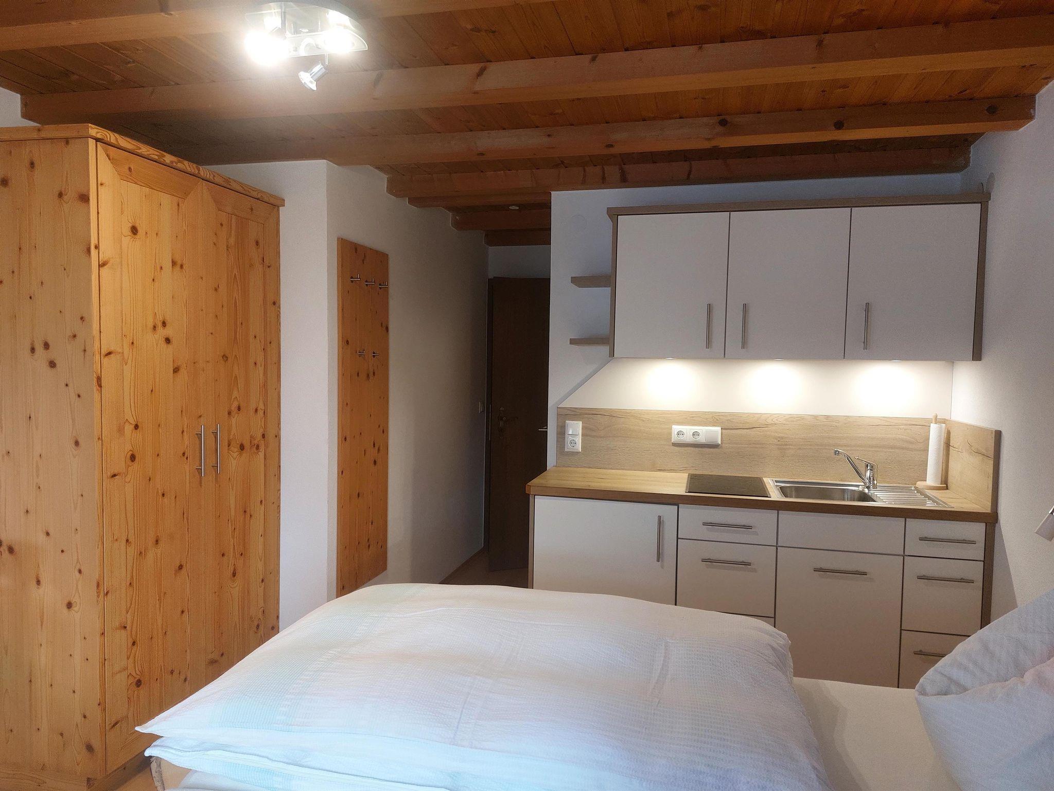 Seit Mai 2017 erwartet Sie ein komplett neu renoviertes 1-Zimmer Appartement mit einer kleinen, aber komplett ausgestatteten Küchenzeile sowie einem abgeschlossenen Badezimmer mit WC und begehbarer Dusche. Auf dem Balkon mit Blick in die Berge können Sie den Tag mit einem Sonnenaufgang starten.