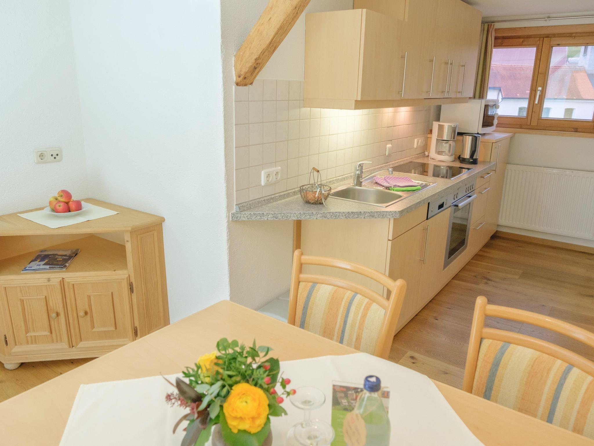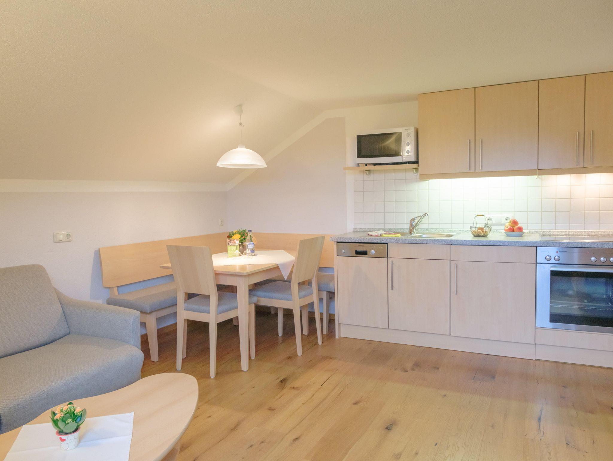 Diese Ferienwohnung ist nach Süden ausgerichtet und ist mit einem Wohn - Schlafzimmer, einem weiteren Schlafzimmer, einer Wohnküche mit Spülmaschine, Backofen, Mikrowelle, TV und Du/Wc ausgestattet.