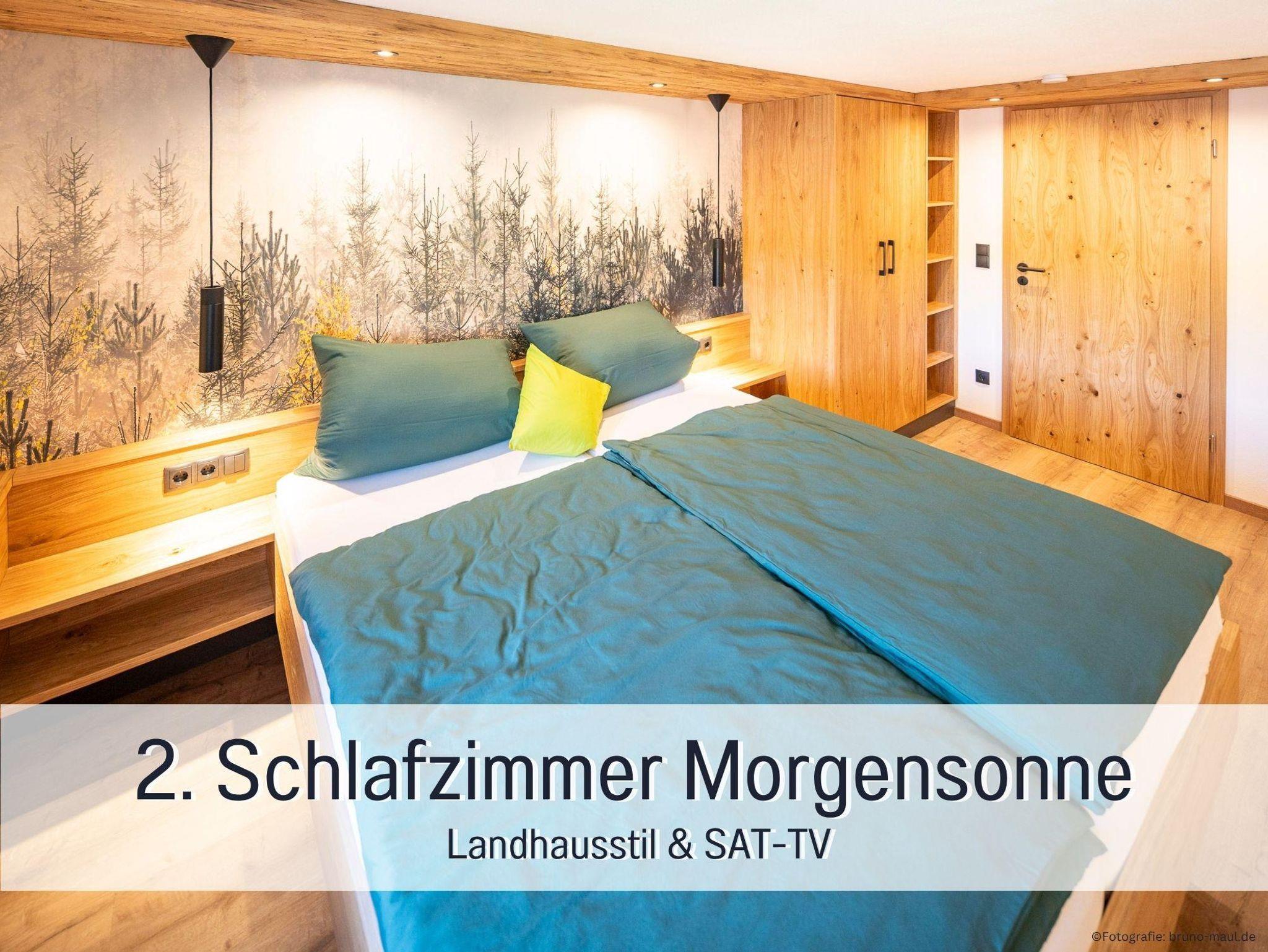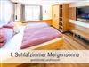 Unsere Ferienwohnung Morgensonne liegt im 1. Obergeschoss und ist mit ihren 90?m² unser großzügigstes Zuhause auf Zeit – ideal für zwei bis sechs Personen, die Wert auf Platz, Komfort und Sonnenlicht legen. Die Wohnung verfügt über drei separate Schlafzimmer und zwei Badezimmer mit Dusche und WC, sodass auch bei mehreren Mitreisenden jeder seine Rückzugsmöglichkeiten hat.