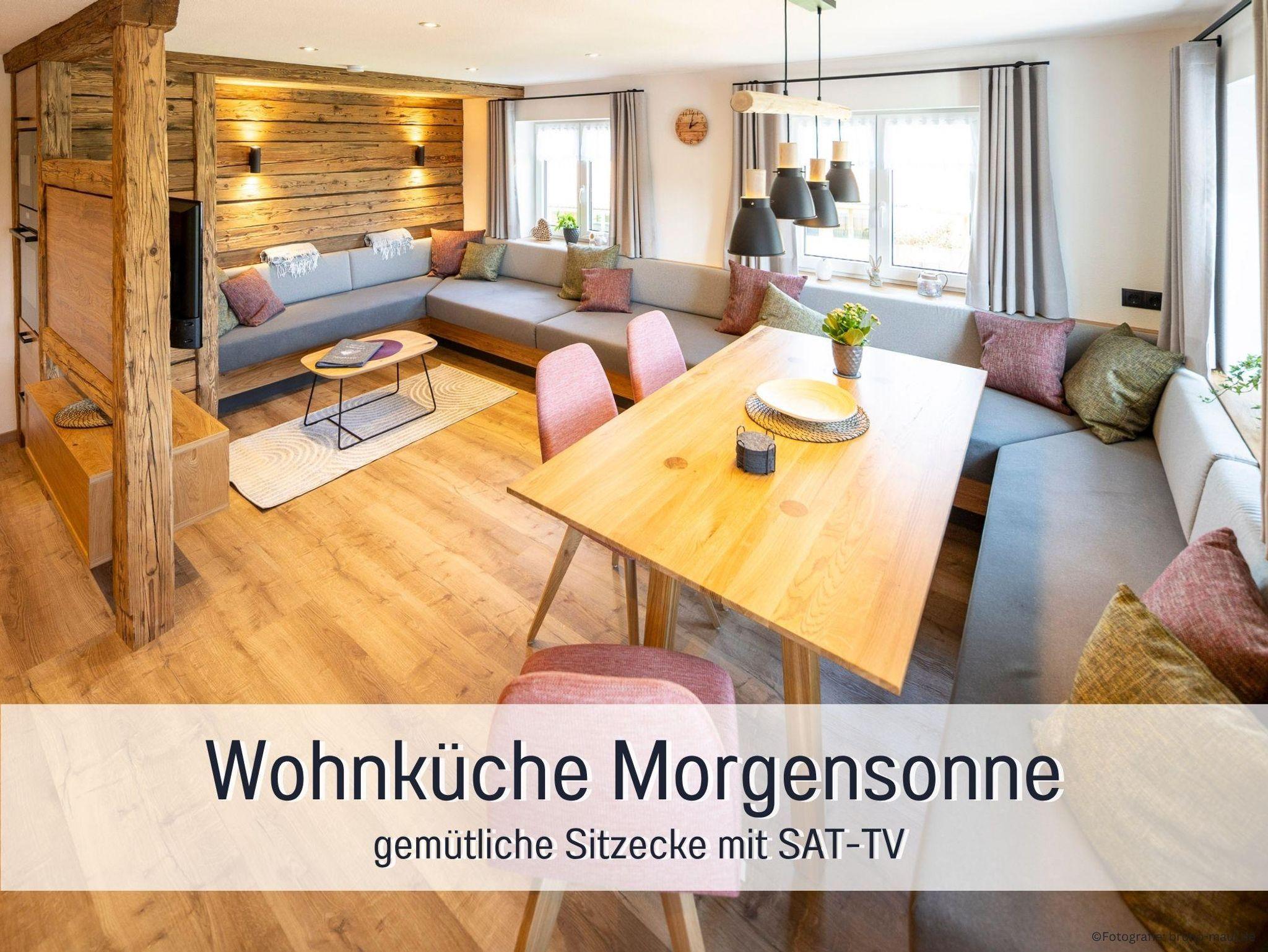 Ihr wohnt in einer unserer drei komfortablen Ferienwohnungen – wahlweise in der neu ausgebauten 90?m²-Wohnung oder in einer der beiden neu renovierten Wohnungen mit 55 bzw. 65?m². Alle Wohnungen sind vollständig eingerichtet und bieten 2 bis 3 getrennte Schlafzimmer, Wohnküche bzw. Wohnzimmer, 1 bis 2 Bäder sowie teilweise einen Balkon mit Bergblick. Die Betten sind bei Anreise frisch bezogen, Hand- und Geschirrtücher liegen für Euch bereit.