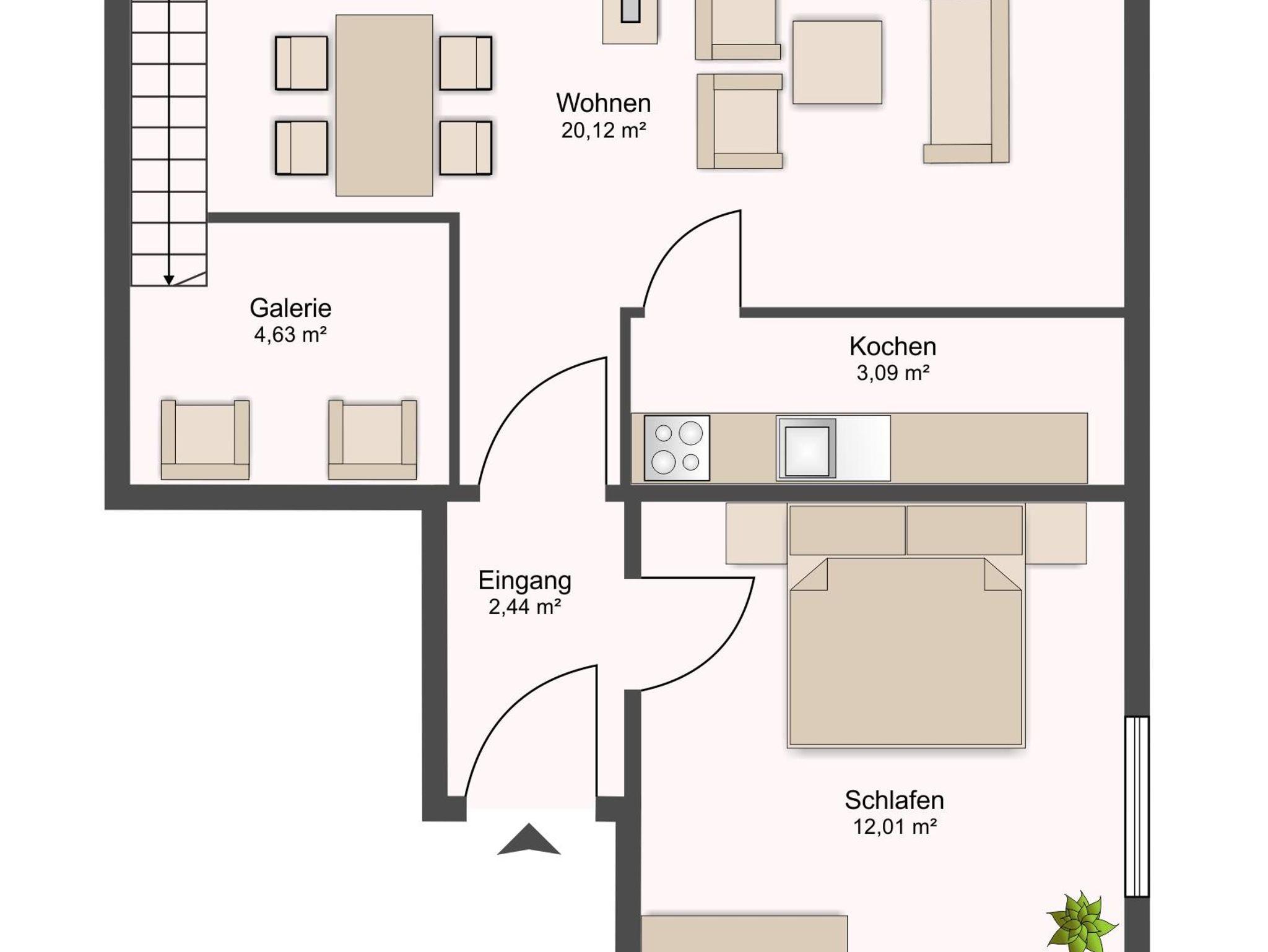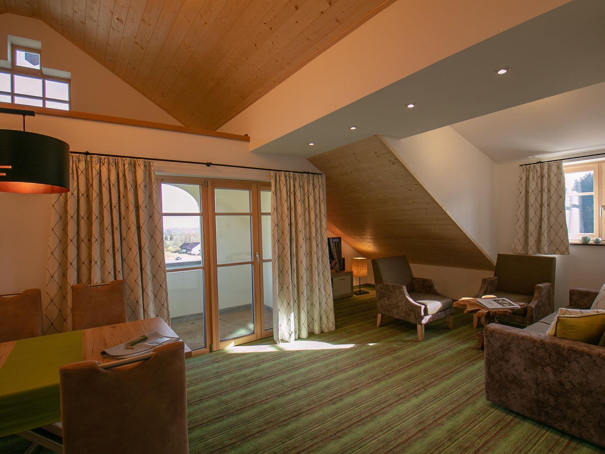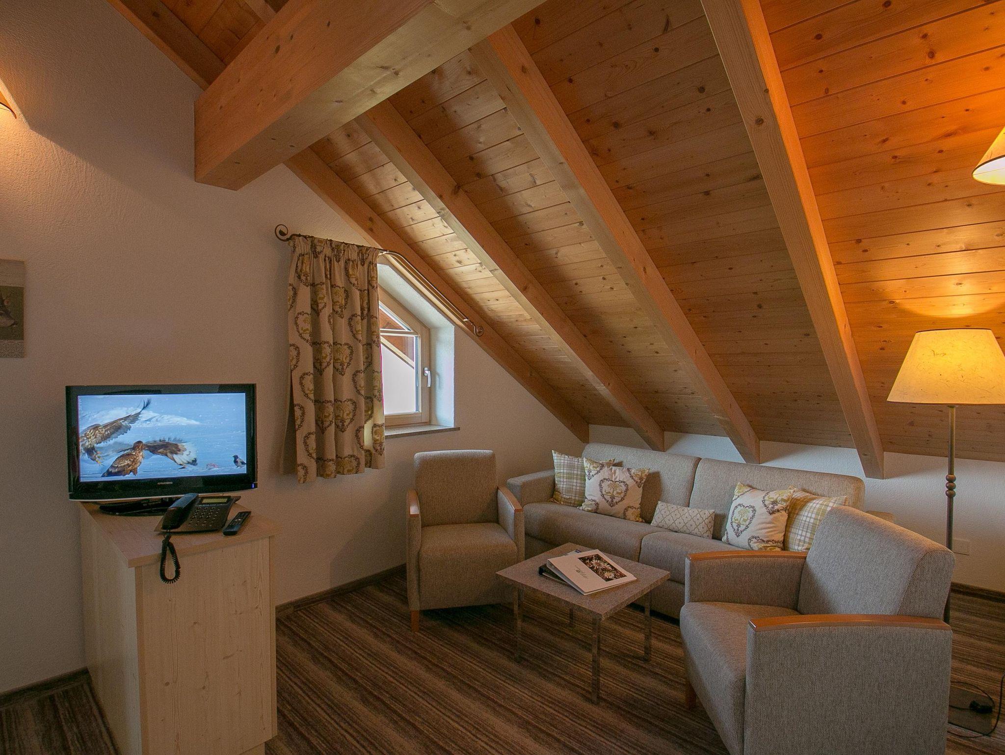 Die Jagd gehört in unseren Fluren seit jeher zur Pflege der Wälder. Die Wohnung im Dachgeschoss verfügt über einenHochstand, der als gemütliche Kuschelecke das besondere Ambiente unterstreicht. Im geräumigen Wohn-Esszimmer finden Sie Platz am gemütlichen Esstisch und zum Entspannen auf dem Sofa. Zusätzliche Schlafmöglichkeit auf Anfrage. Auf dem Westbalkon lässt sich die Nachmittags- und Abendsonne genießen.