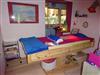 Zwei Betten die auch getrennt stehen können. Großer Kleiderschrank mit Bügeln, Schubladenschrank mit Spiegel,