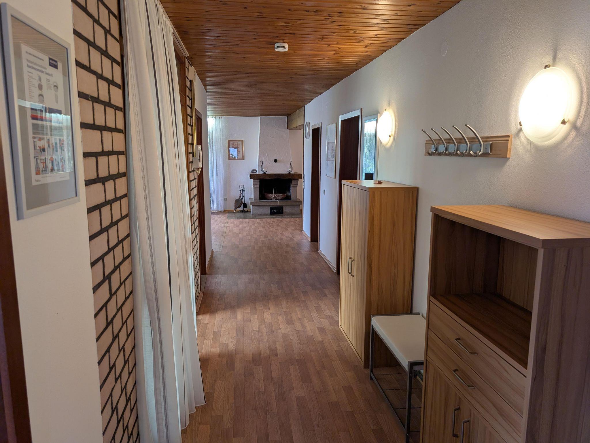 Die Wohnung hat 7 Betten in 3 Schlafzimmern, Diele mit Garderobe, 2 Badezimmer (1x Dusche / WC, 1x Dusche / Badewanne / WC), Küche und großes Wohnzimmer mit Essecke und offenem Kamin.