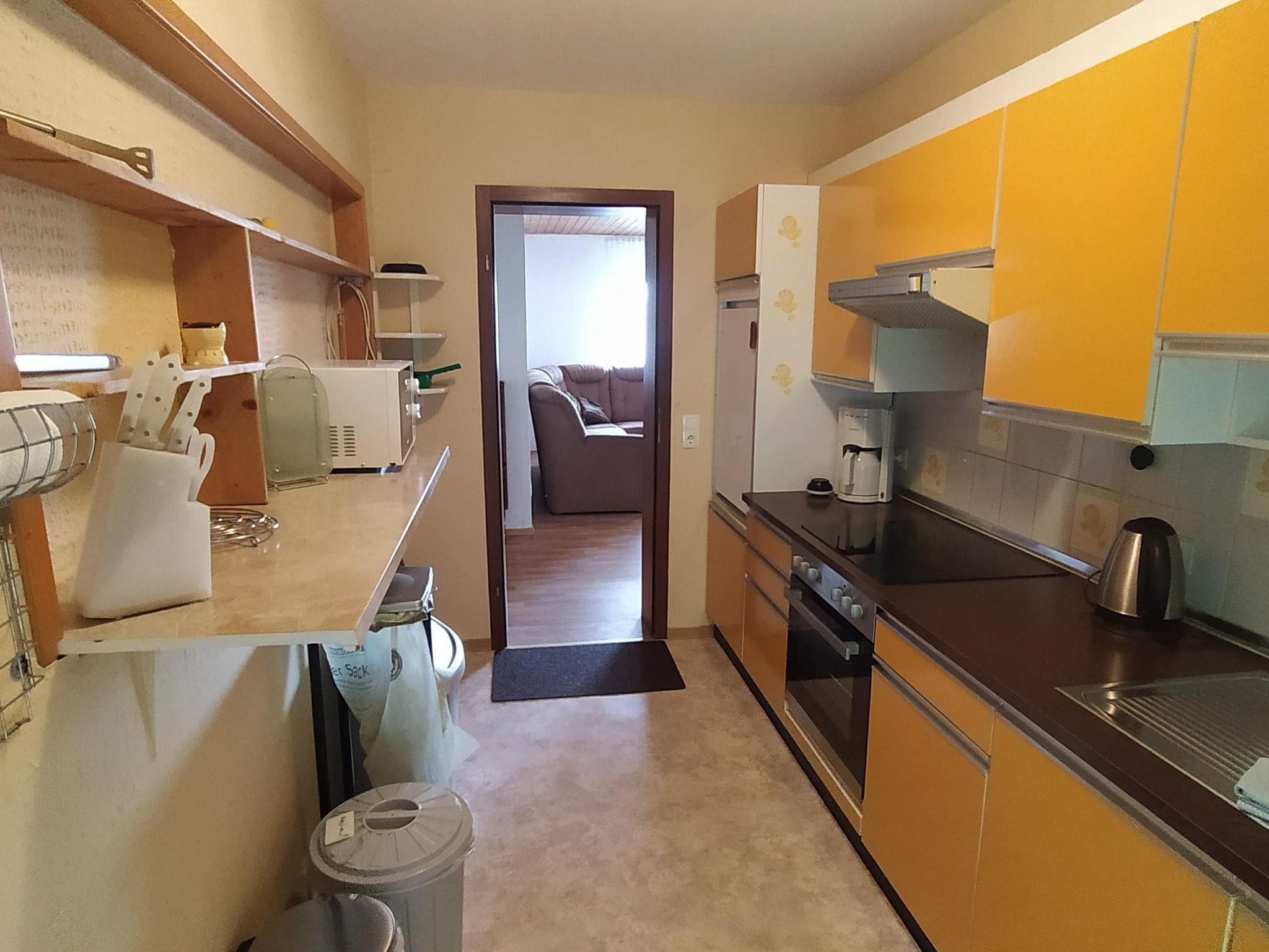 Die Küche ist reichhaltig ausgestattet mit Geschirr, Besteck, Töpfen und Pfannen sowie verschiedenen Gläsern (auch Wein- und Sektgläser). Neben Backofen und Kochfeld mit 4 Platten finden Sie auch noch eine Mikrowelle, Kühlschrank, Kaffeemaschine, Wasserkocher, Toaster und Mixer vor. Außerdem stehen eine Flasche mit Olivenöl, Pfeffer und Salz, Kaffeefilter und etwas Kaffeepulver zur Nutzung für Sie bereit. Im Wohnzimmer finden Sie SAT-TV, DVD-Player und Stereo-Anlage mit Radio- und CD-Spieler. Für die Nutzung des offenen Kamins finden Sie etwas Holz sowie Anzünder und Streichhölzer vor. Ein Telefon ist ebenfalls vorhanden (nicht in allen Wohnungen). Innerdeutsche Telefonate im Festnetz können kostenfrei getätigt werden. Telefonate in Mobilfunknetze oder ins Ausland werden abgerechnet.