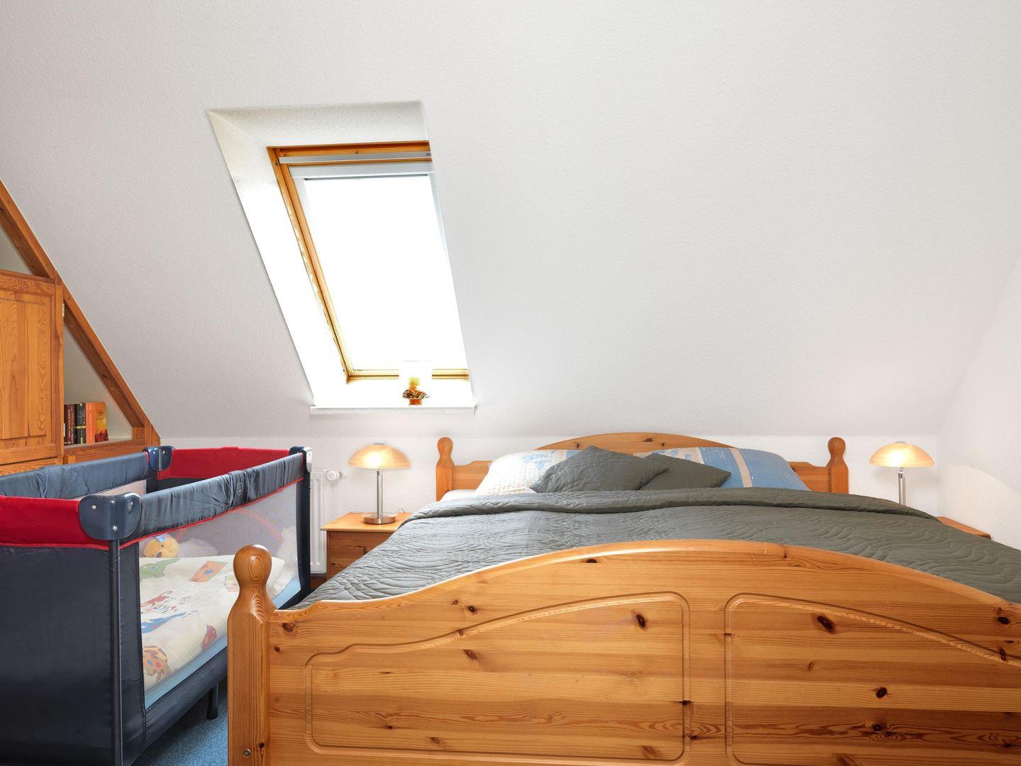 In dieser gemütlichen Dachgeschosswohnung erwartet Sie ein helles Wohnzimmer mit Küchenzeile und Essbereich. Ein Flach-TV sowie eine Anlage mit Radio-/CD-/DVD Player stehen für Ihre Unterhaltung bereit. Außerdem befindet sich hier ein Schlafzimmer mit Doppelbett sowie ein Schlafzimmer mit 2 Einzelbetten. Ein Bad mit WC und Dusche ist ebenfalls im OG zu finden.