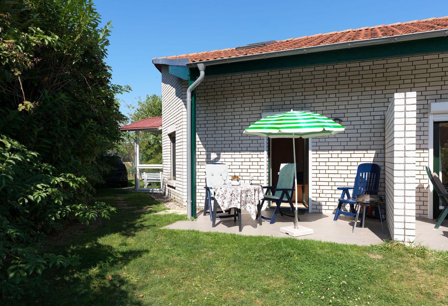 Das Feriendoppelhaus steht auf einem über 600m² großem, mit Stabgitterzaun eingefriedetem Grundstück und liegt am Ende eines ruhigen Privatweges (Sackgasse),