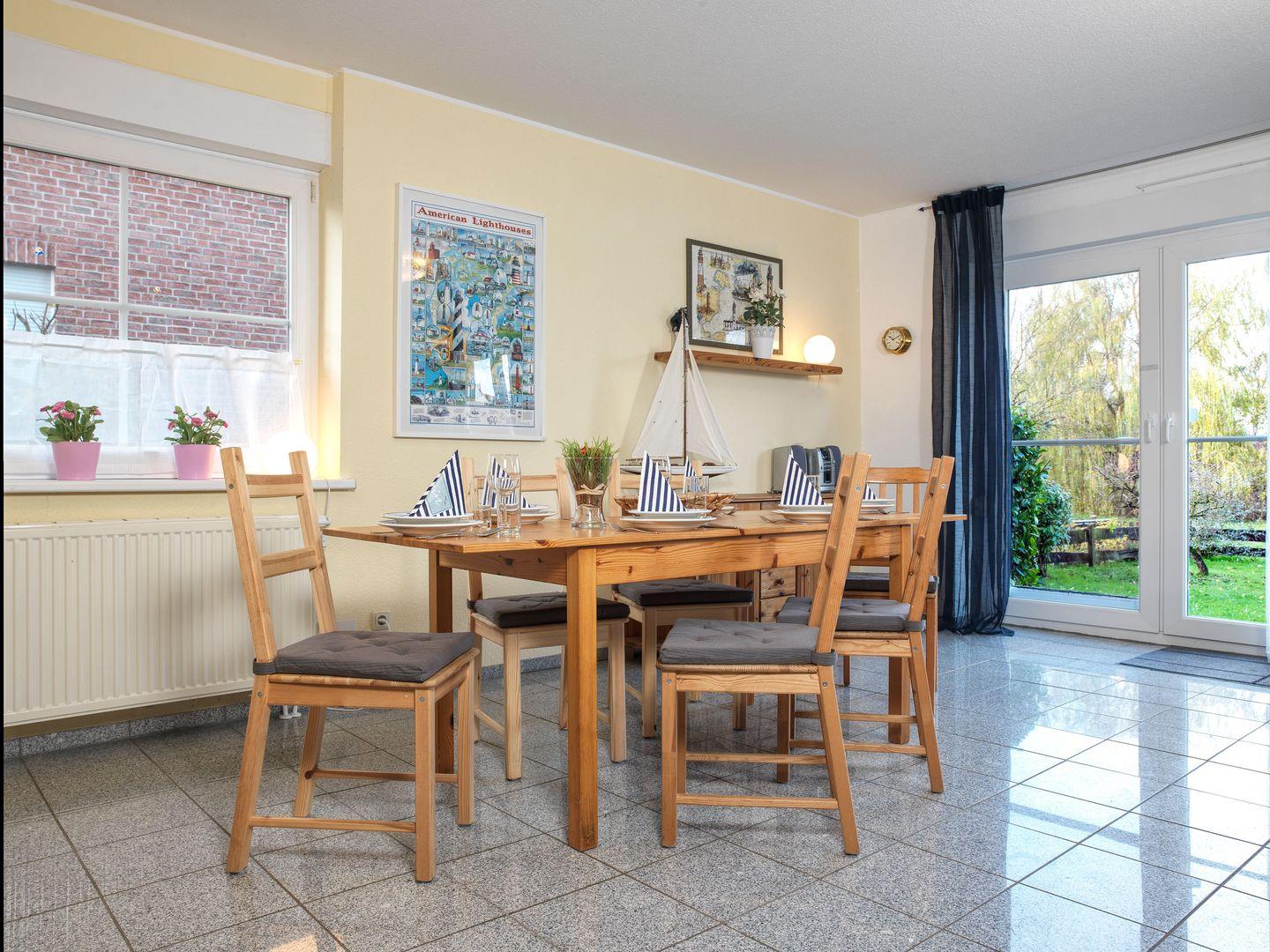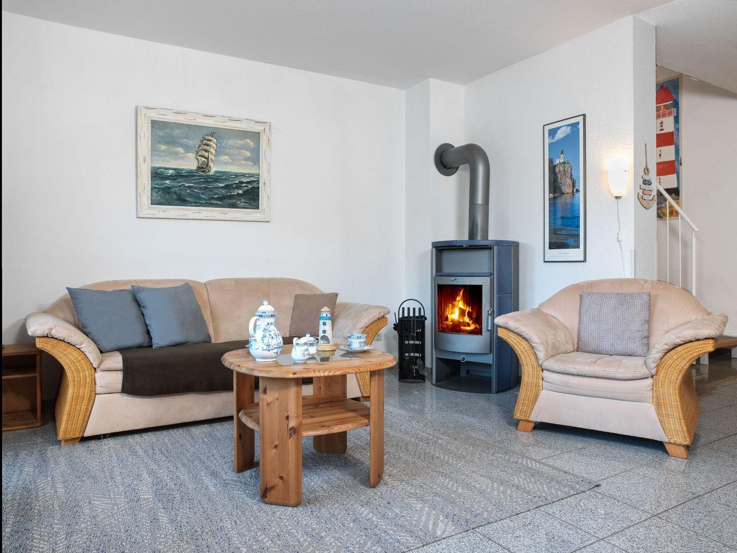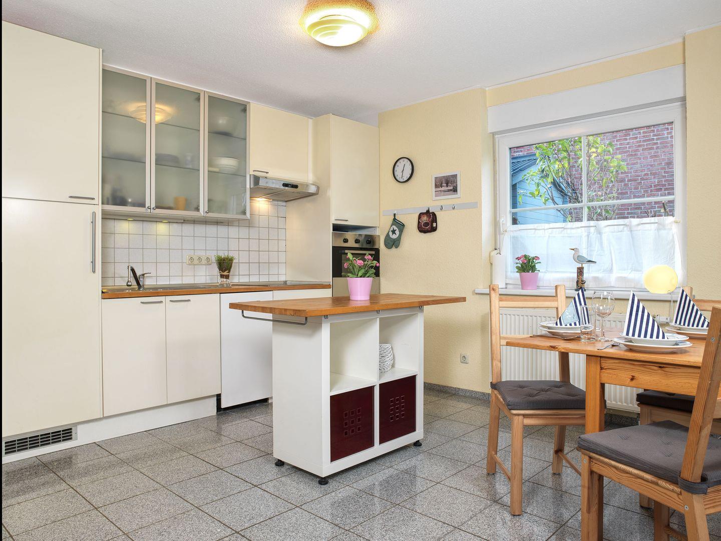 Diese schöne Doppelhaushälfte erwartet Sie für geruhsame Tage! Das gemütliche Wohnzimmer mit Flat-TV und offener, kleiner Einbauküche: Kühlschrank, Herd / Backofen, Geschirrspüler, Wasserkocher, Toaster und Kaffeemaschine lässt keine Wünsche offen.