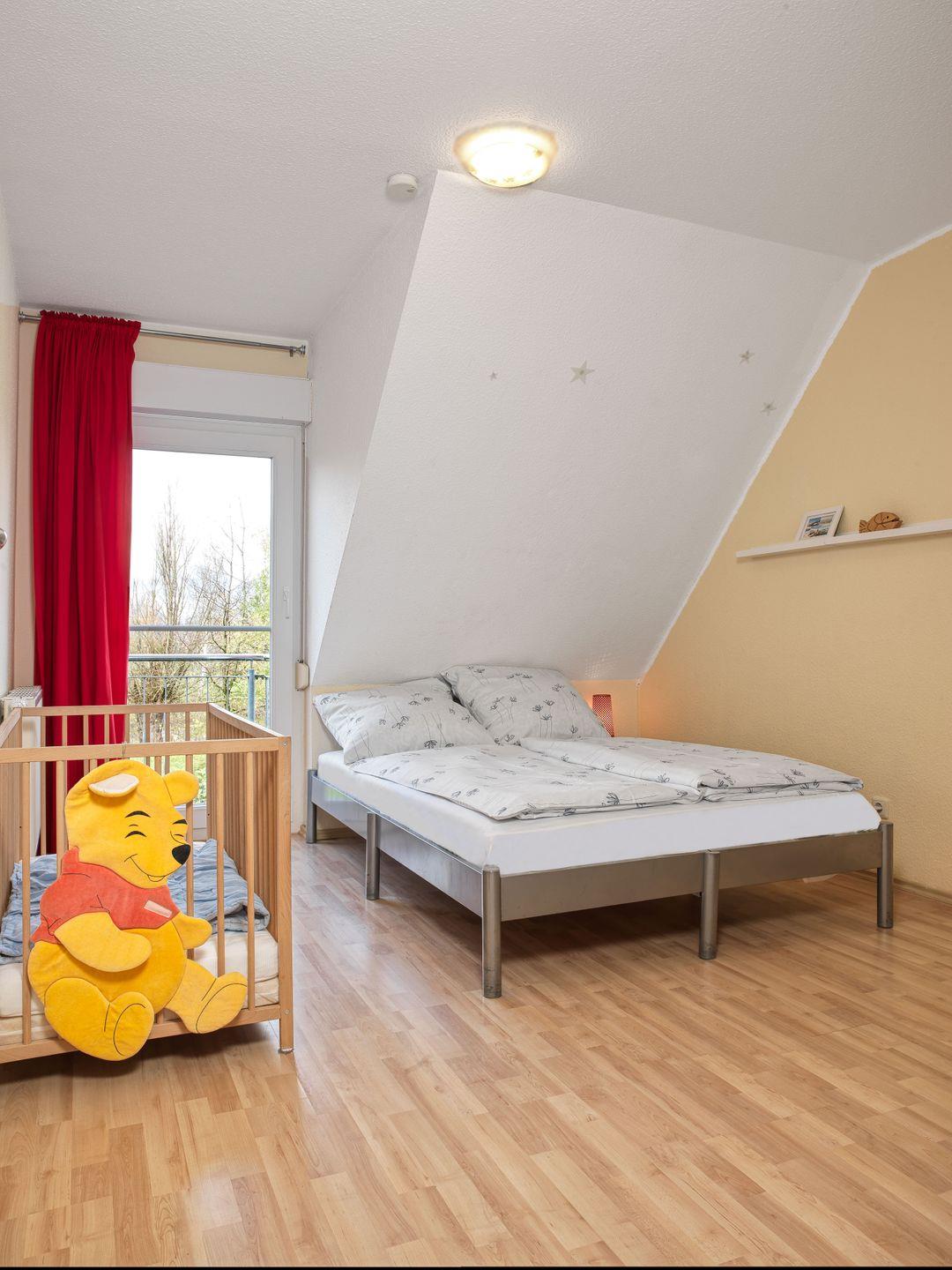 Die Gemütlichen Schlafzimmer mit Doppelbetten sowie ein Babybett (160 x 200 / 140 x 200 / 2x 90 x 200) befinden sich im OG.