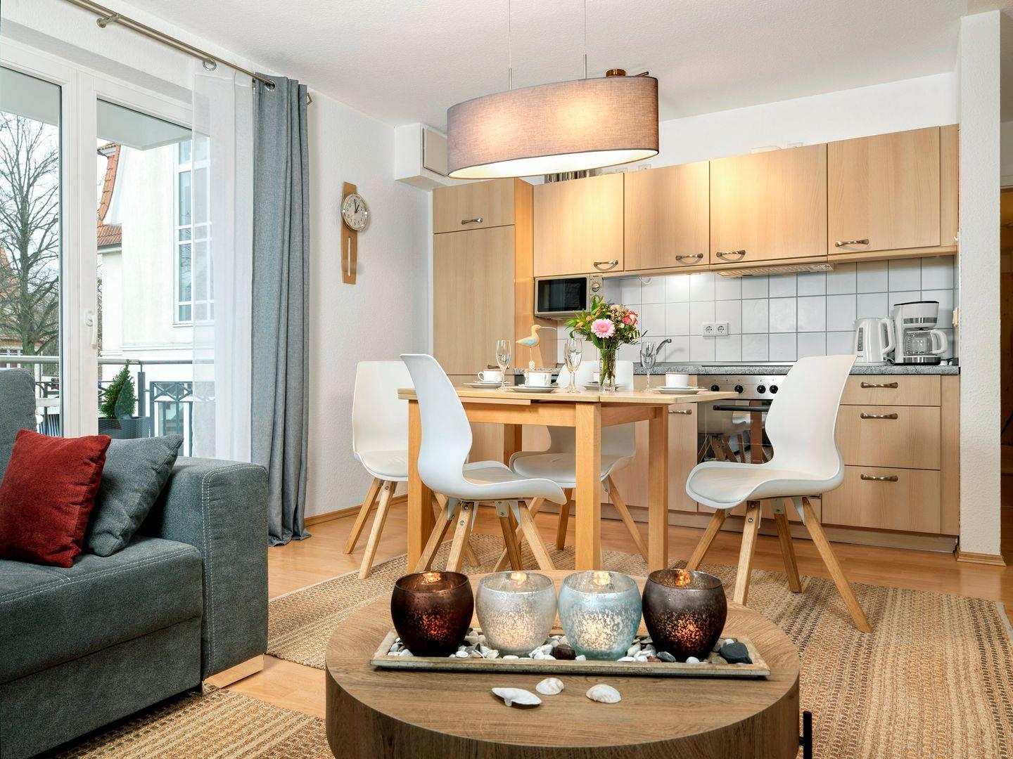 Direkt am Strand vom Schwarzen Busch liegt das Appartement „Strandmuschel“, es ist 60m² groß und befindet sich im 1. Obergeschoss eines Appartementhauses.