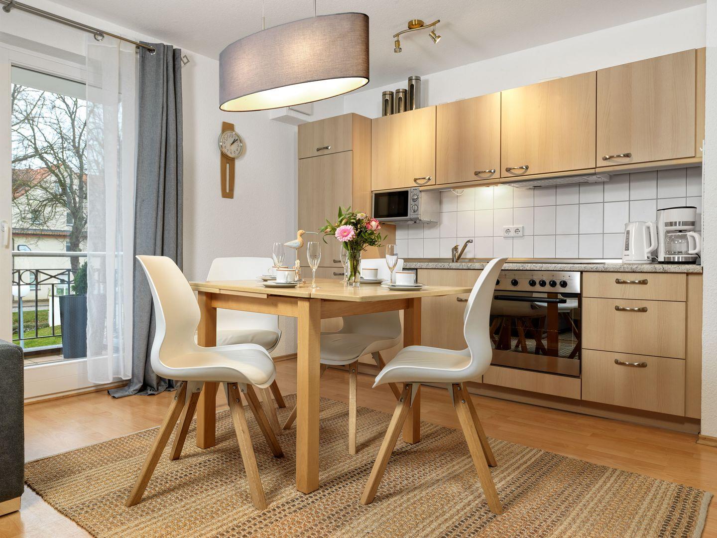 Vom hochwertig ausgestatteten Wohn/ Esszimmer gelangen Sie auf die beiden schönen Süd-Balkone. Ein Schlafzimmer ist mit einem Boxspringbett, ein weiteres Zimmer mit 2 Einzelbetten ausgestattet. Das Bad ist mit Dusche, WC und Fenster ausgestattet.