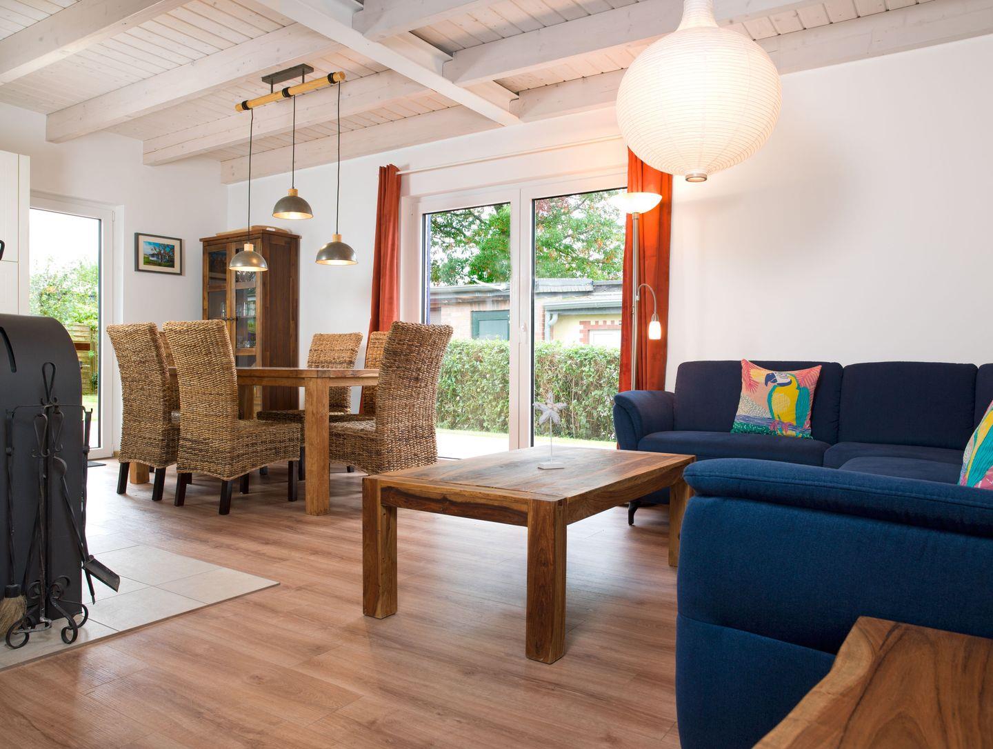 Der große Wohnbereich mit einem schönen Essplatz mit Blick ins Grüne und mit offener Einbauküche macht Ihren Urlaub zu etwas Besonderem.
