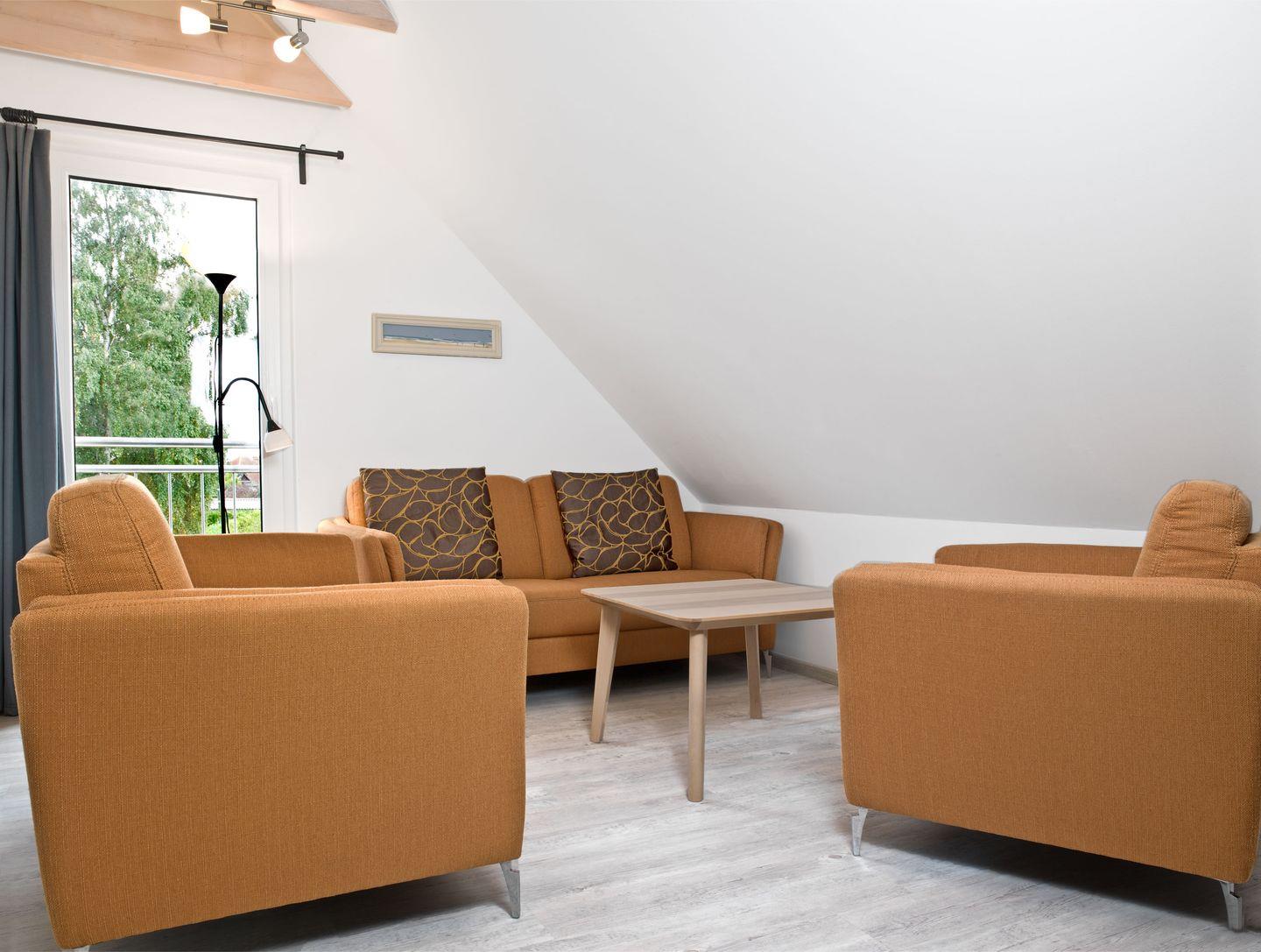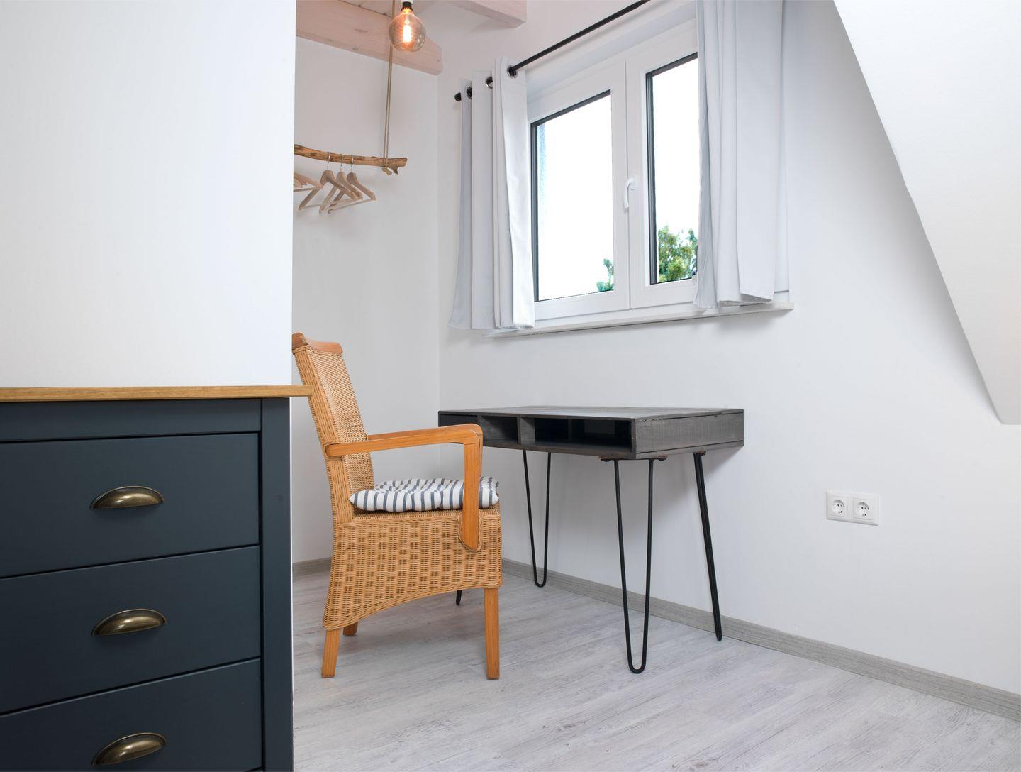 Im OG befindet sich ein Schlafzimmer mit Doppelbett, ein Schlafzimmer mit zwei Einzelbetten, ein Bad mit Dusche und WC sowie eine gemütliche Sitzecke mit TV.