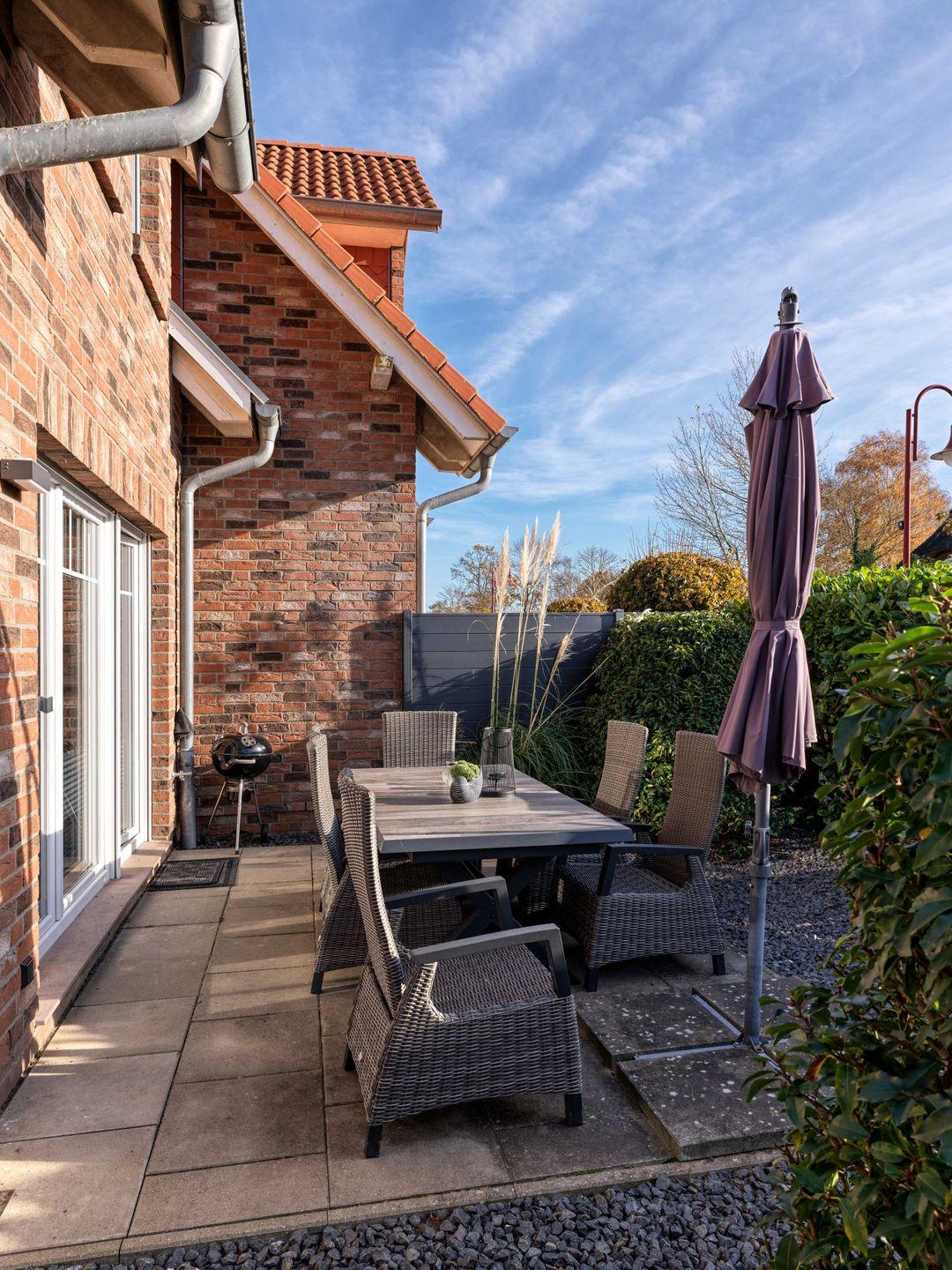 Diese Doppel-Haushälfte verfügt im Erdgeschoss über einen großzügigen, hellen Wohnraum mit separater Essecke, Kaminofen und moderner Einbauküche. Vom hochwertig und liebevoll eingerichteten Wohnzimmer aus haben Sie direkten Zugang zur Terrasse mit Gartenmöbeln für gemütliche Sonnentage.