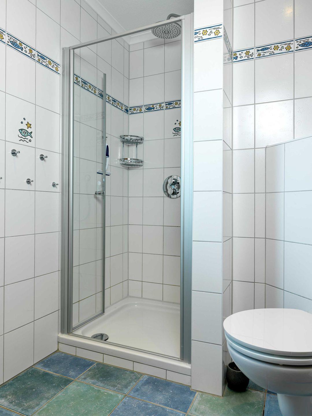 Im Obergeschoss erwarten Sie ein Badezimmer mit Dusche/WC/Waschmaschine, zwei Schlafzimmer mit je einem Einzelbett, ein Schlafzimmer mit einem Doppelbett und einem 2. TV für insgesamt 4 Personen.