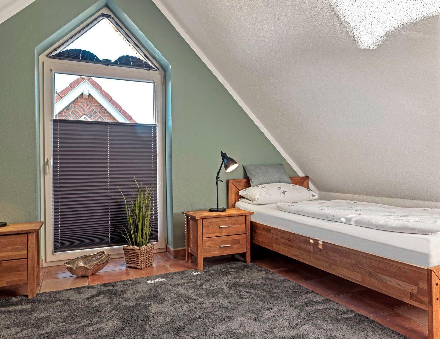 2 weitere Personen können im gemütlichen Dachgeschoß in 2 Einzelbetten unter Schrägen nächtigen.